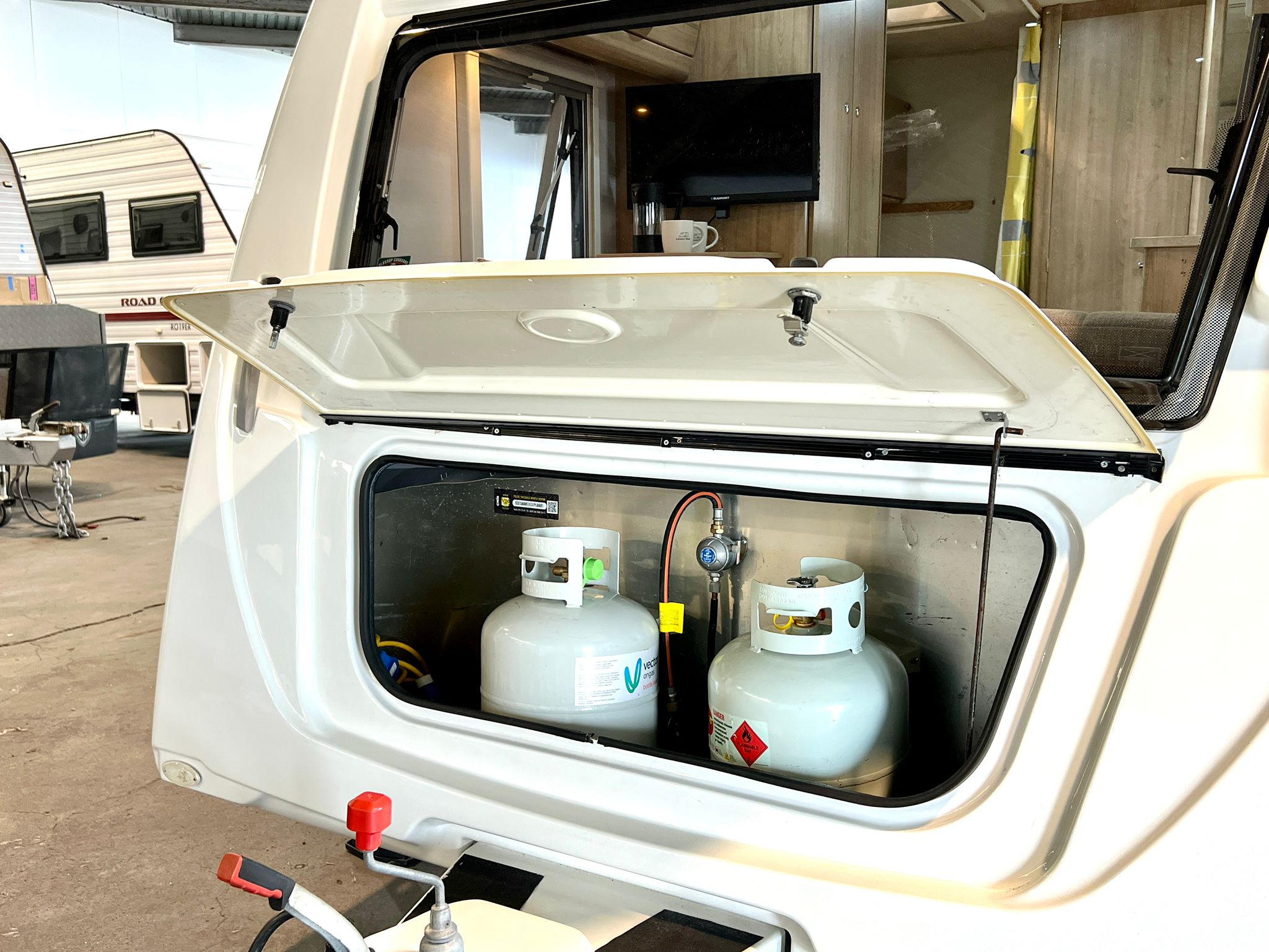 - Roll-away fresh water and waste tanks