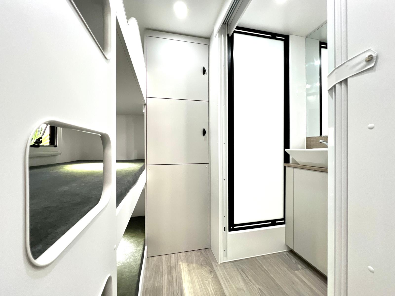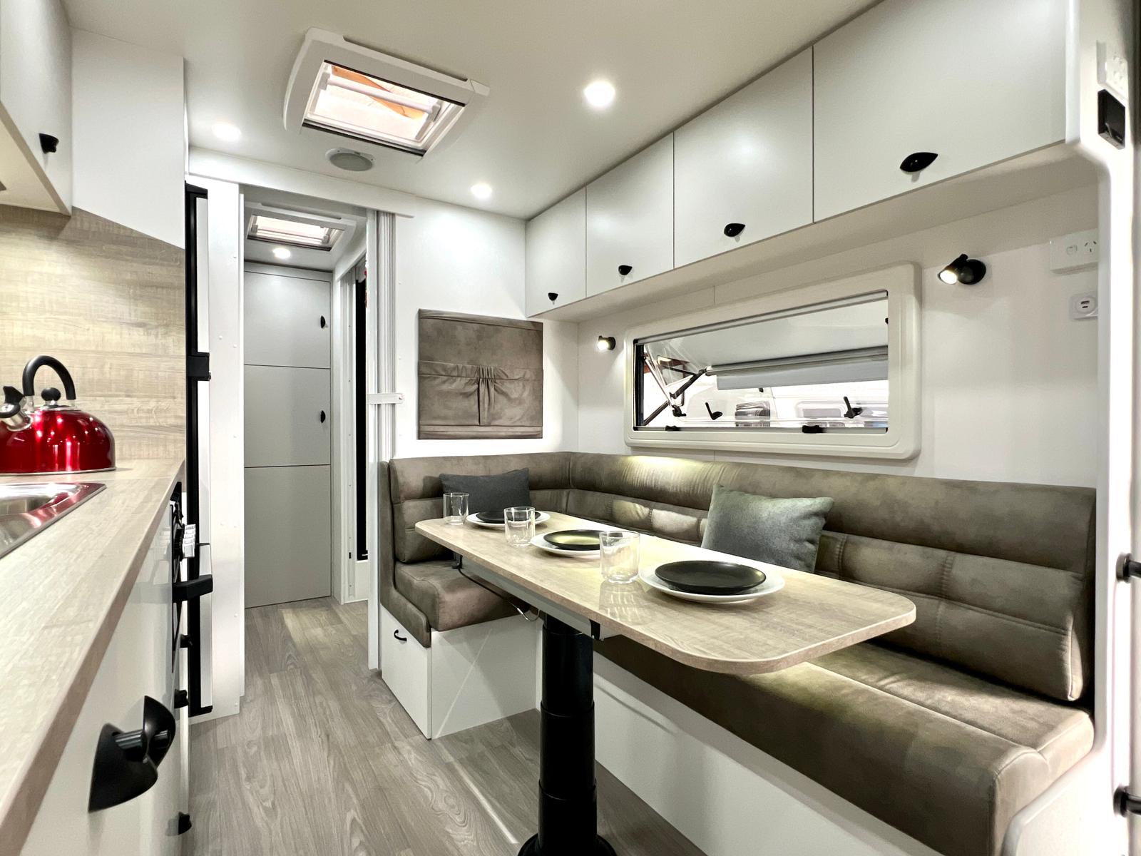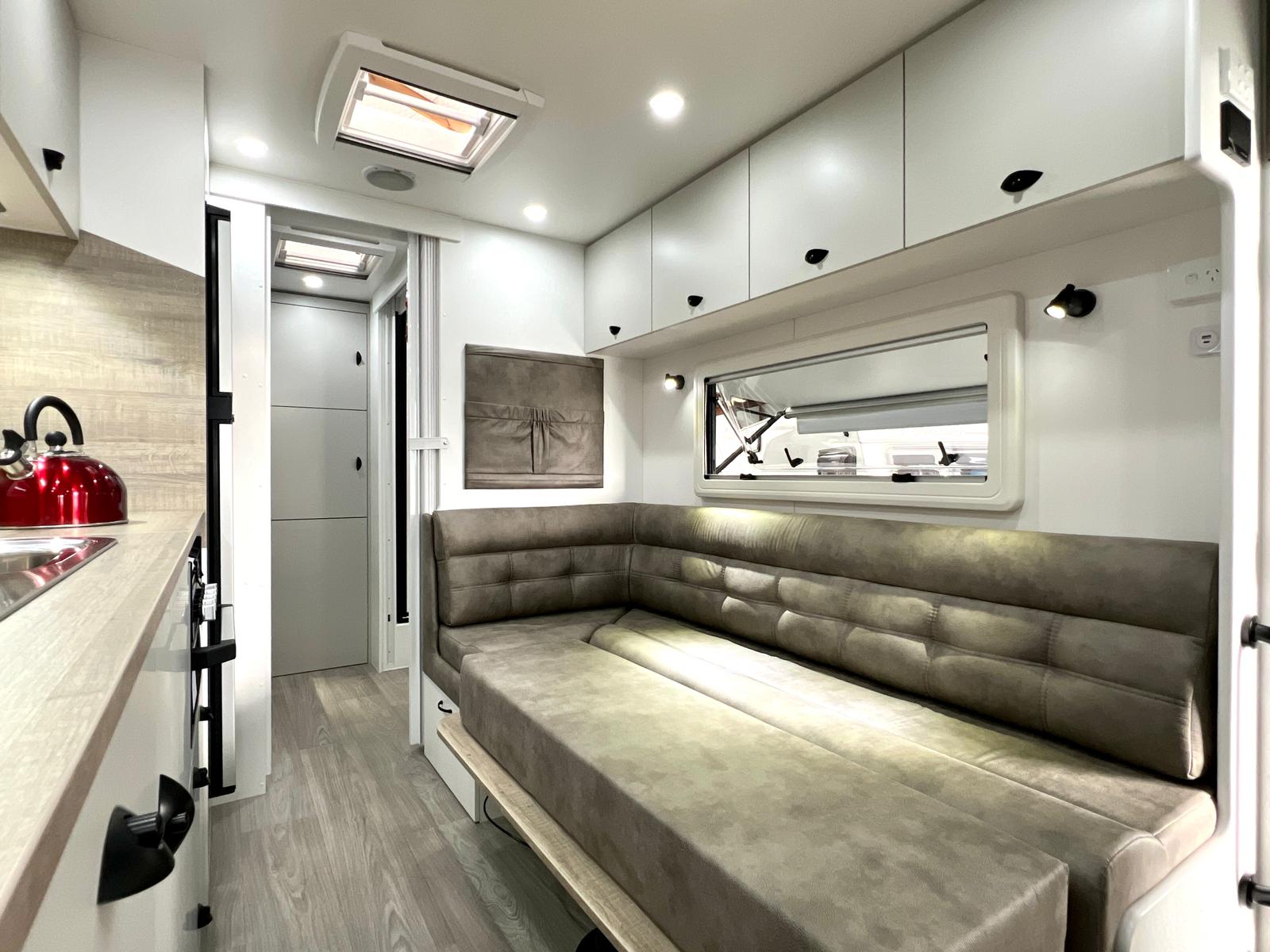 Featuring double or triple bunks, Queen Island bed, full ensuite & L-shaped dinette / bed – The Family LS sleeps the whole crew in comfort.