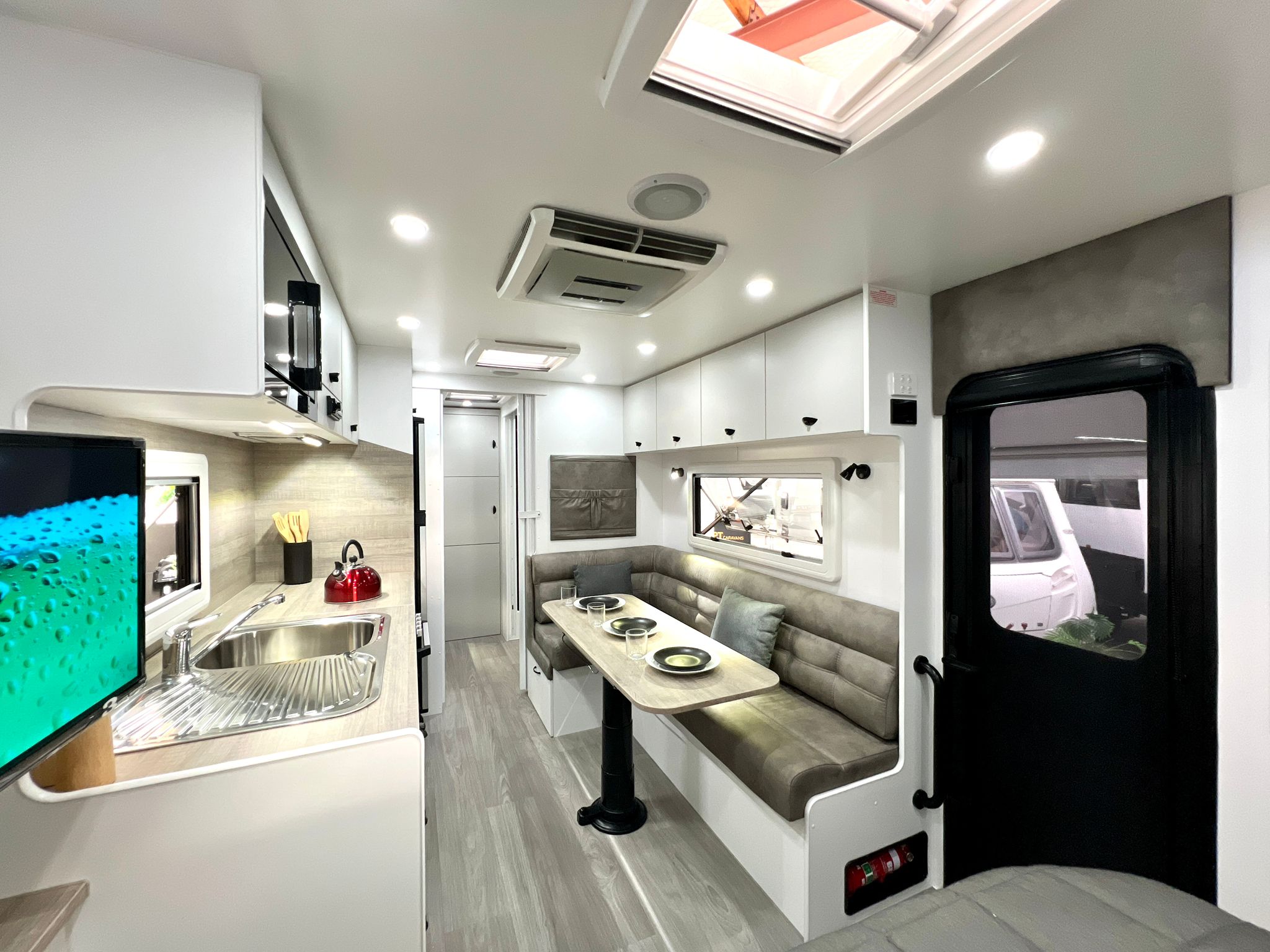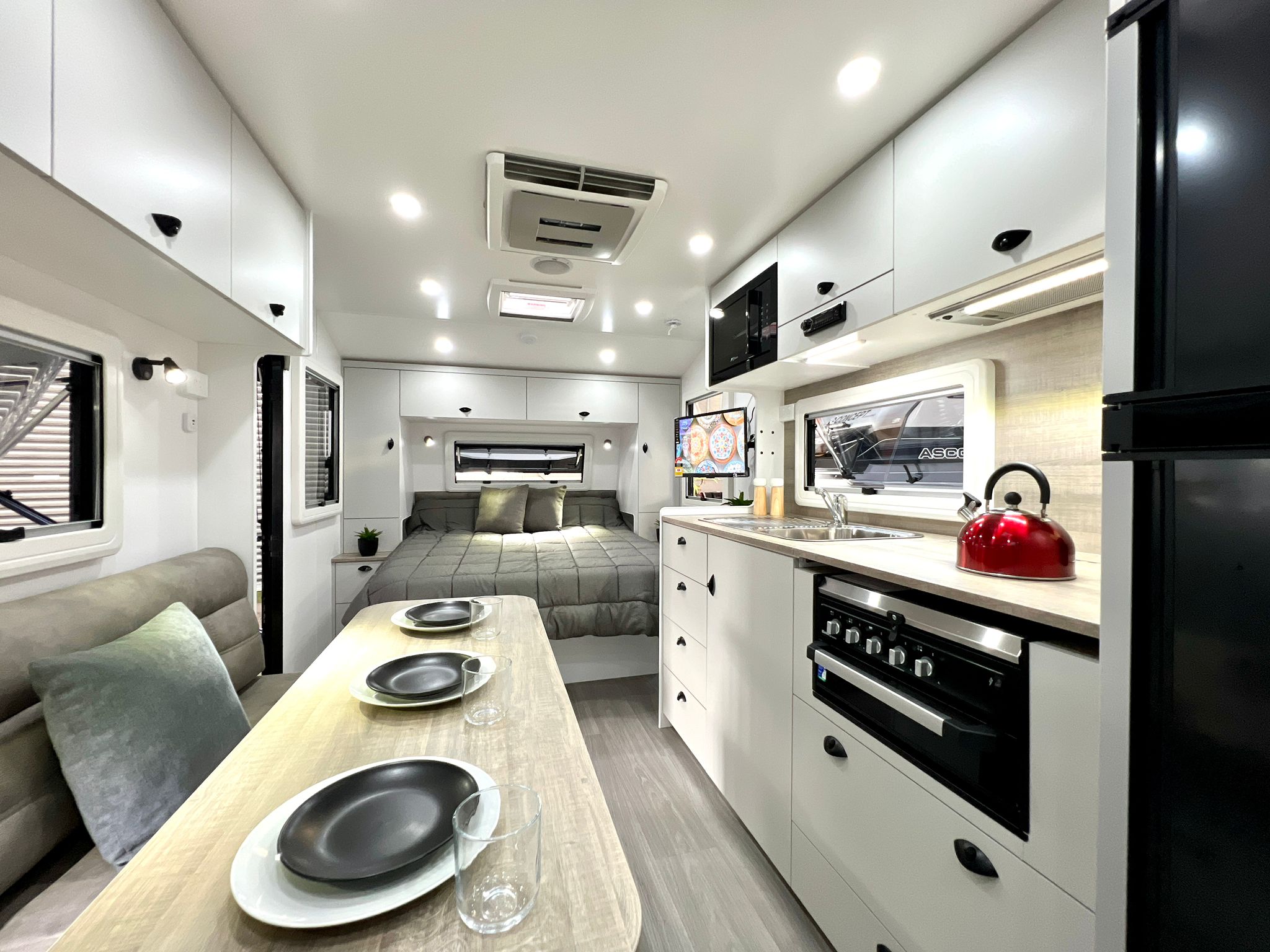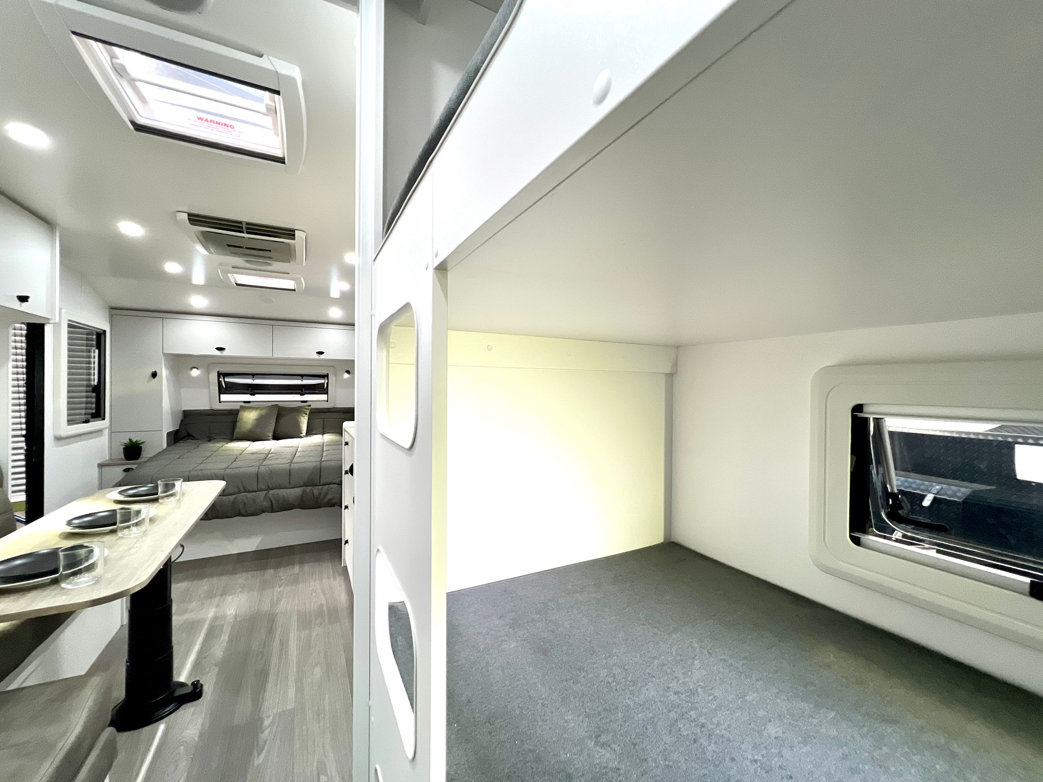 Featuring double or triple bunks, Queen Island bed, full ensuite & L-shaped dinette / bed – The Family LS sleeps the whole crew in comfort.