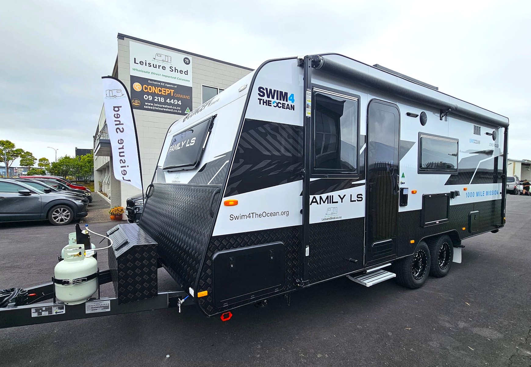 THE OFFICIAL “SWIM 4 OCEAN” CHARITY CARAVAN, NEAR-NEW, BALANCE OF FACTORY WARRANTY!