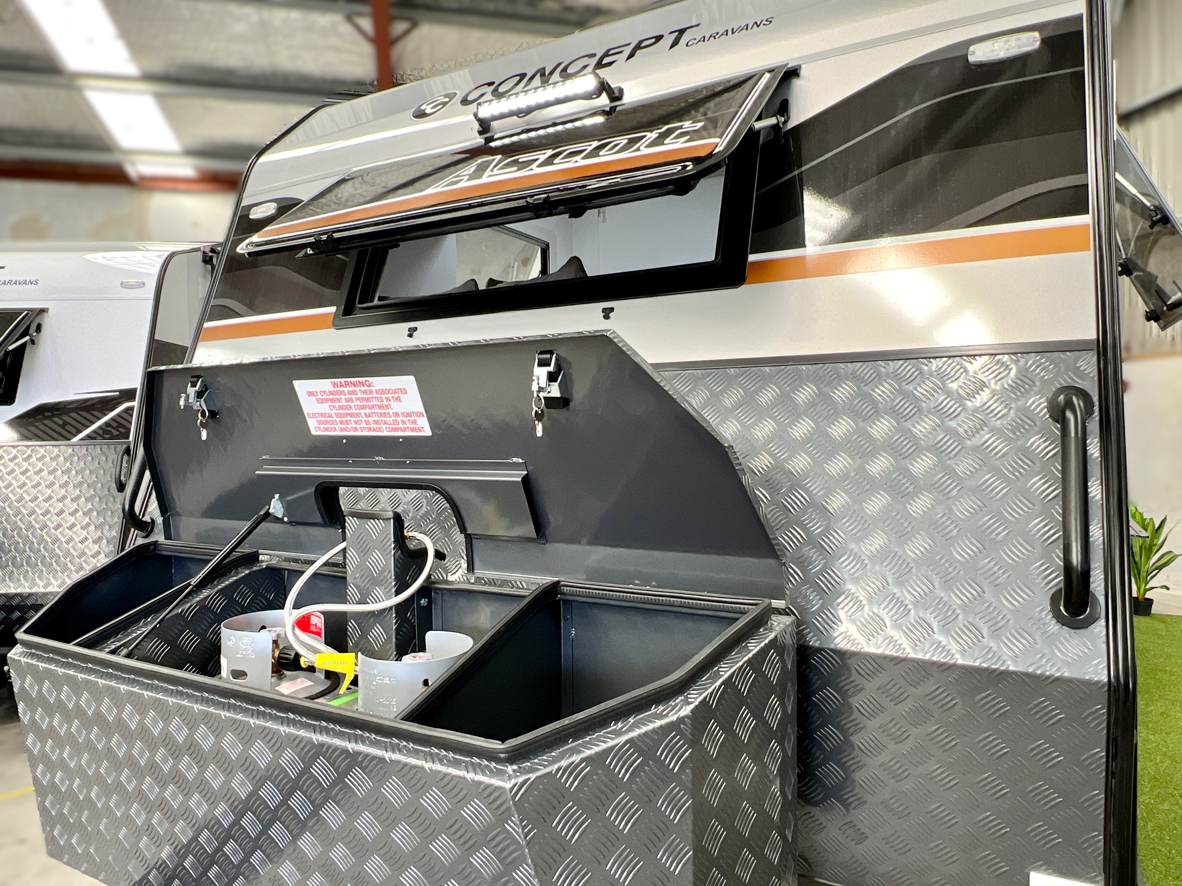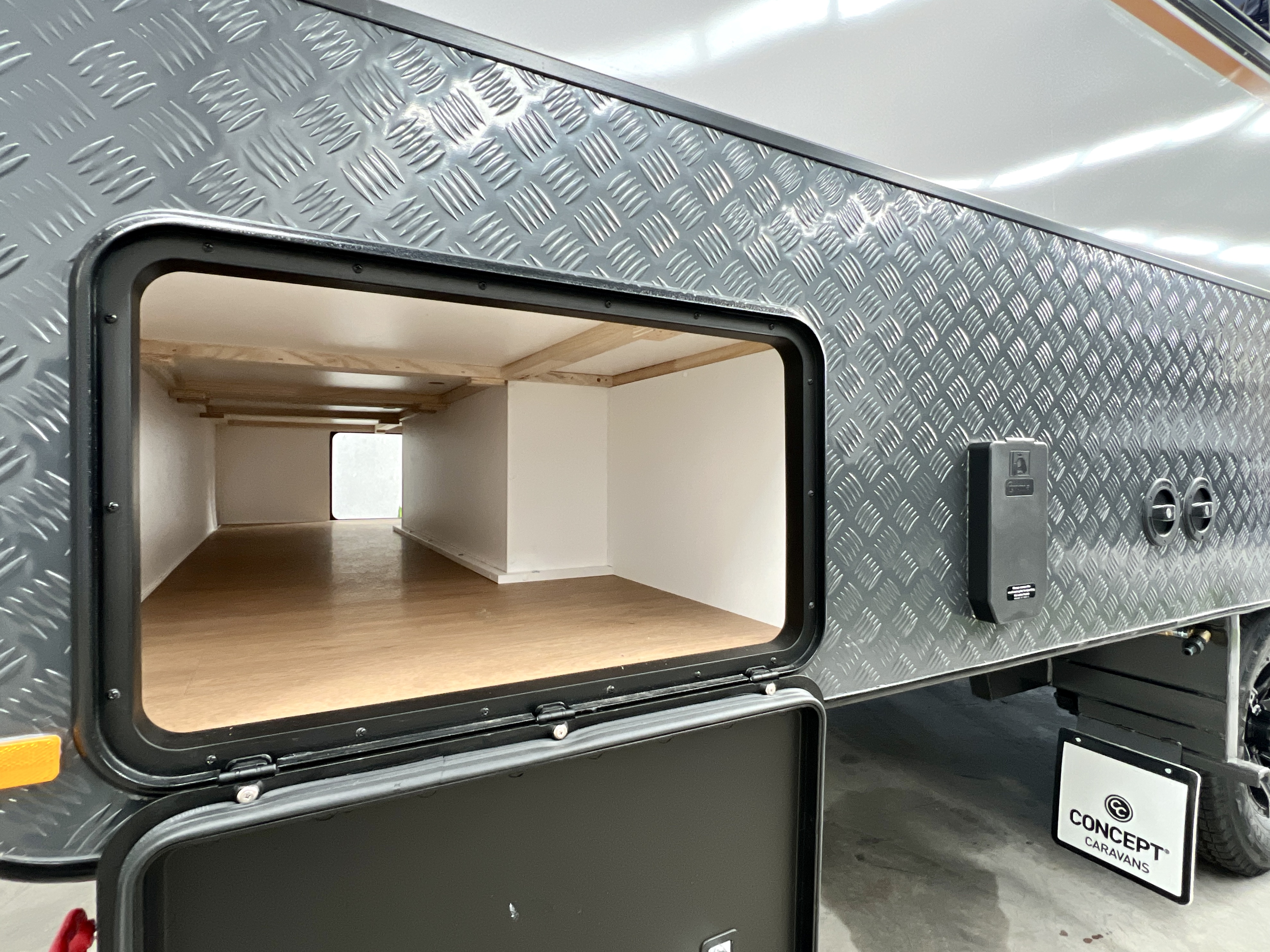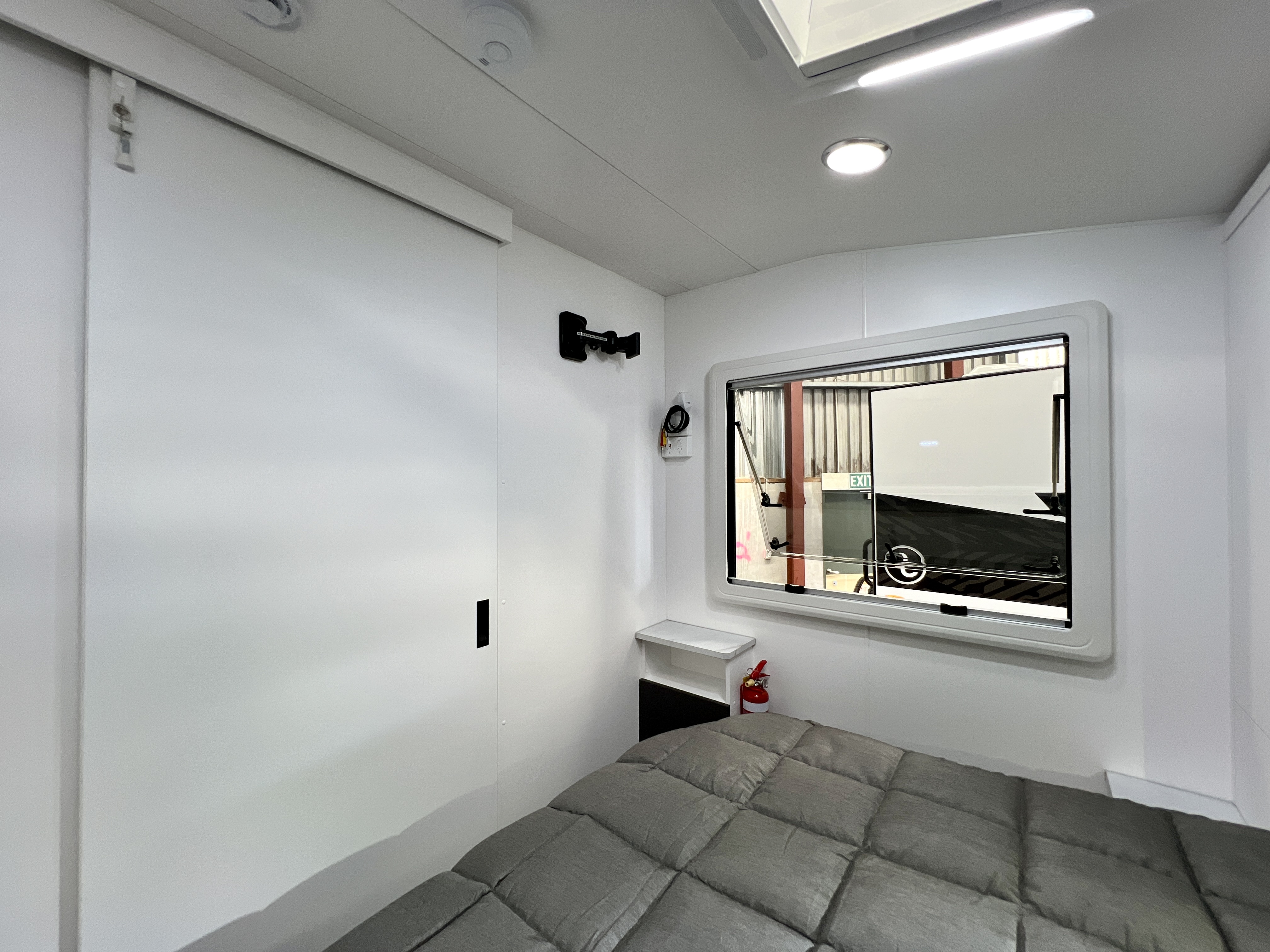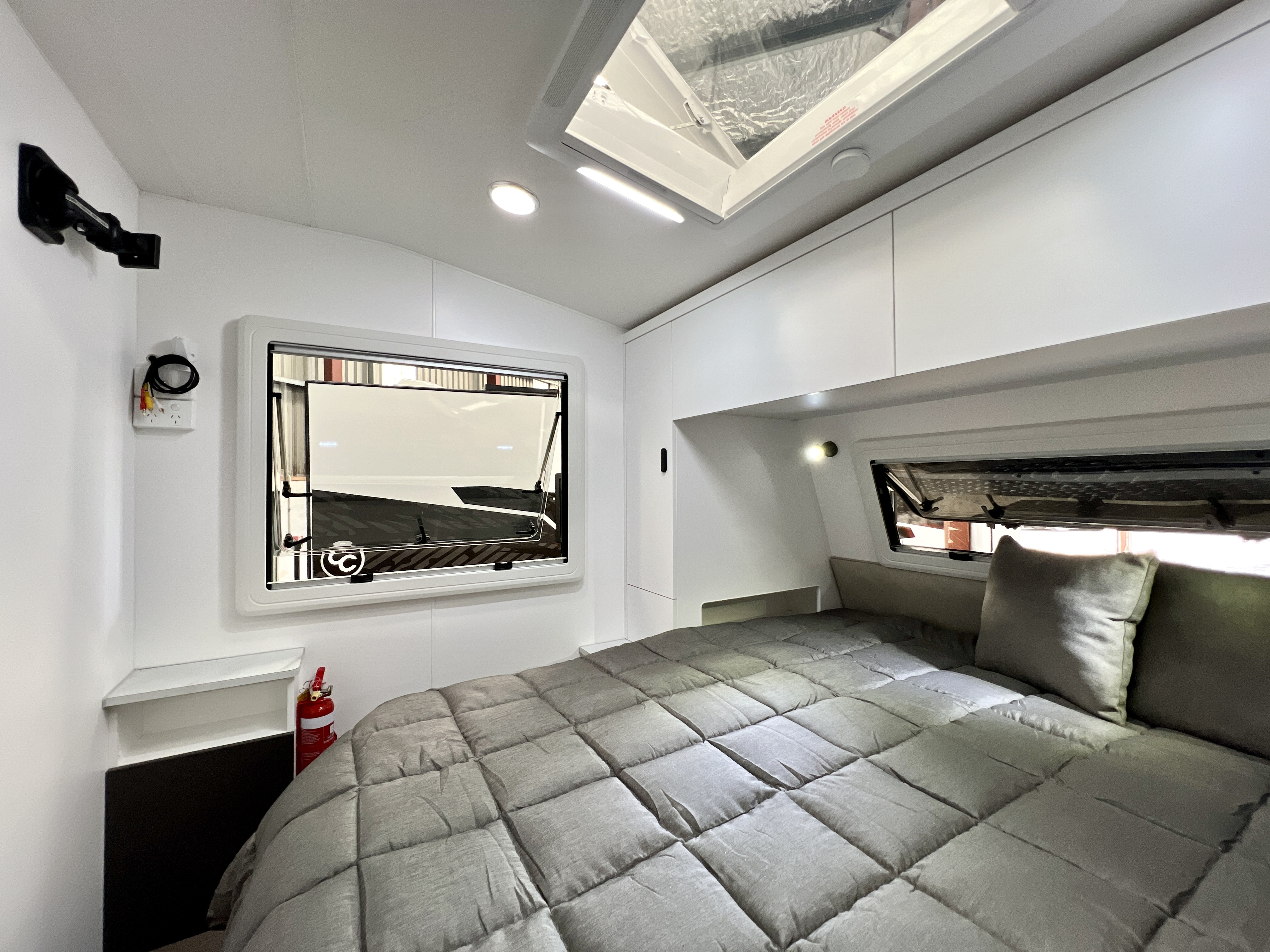 - Personal storage compartment to bedside with 12v USB A/C combo sockets and power points