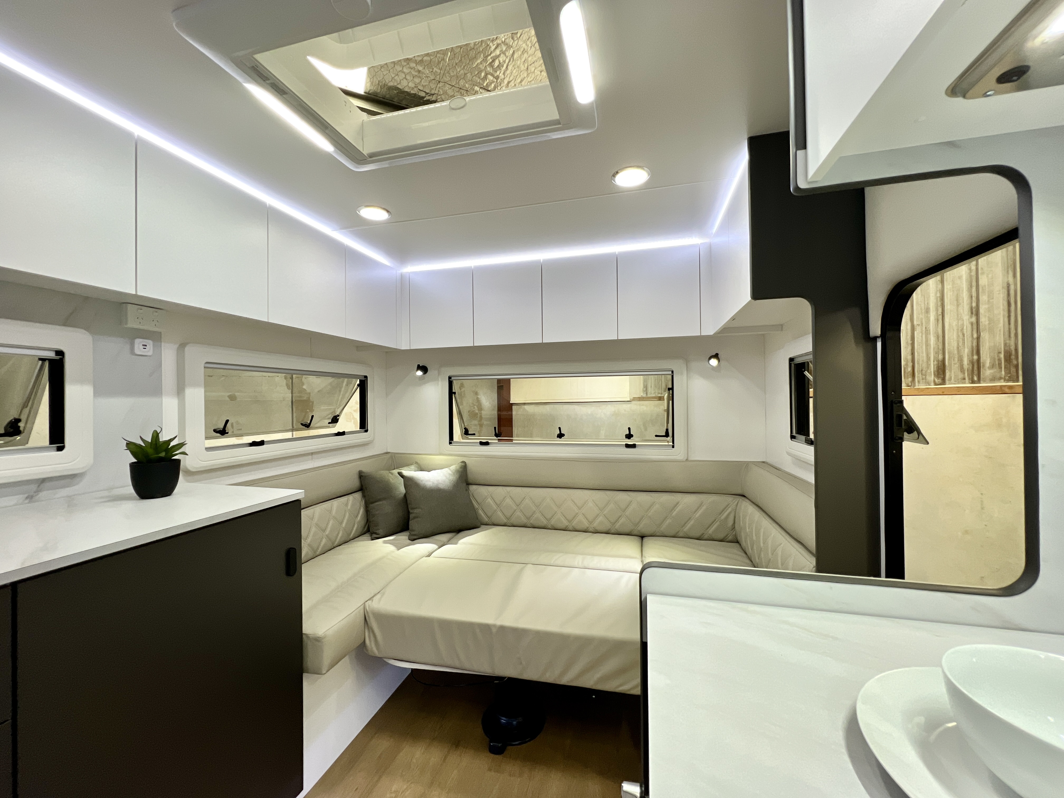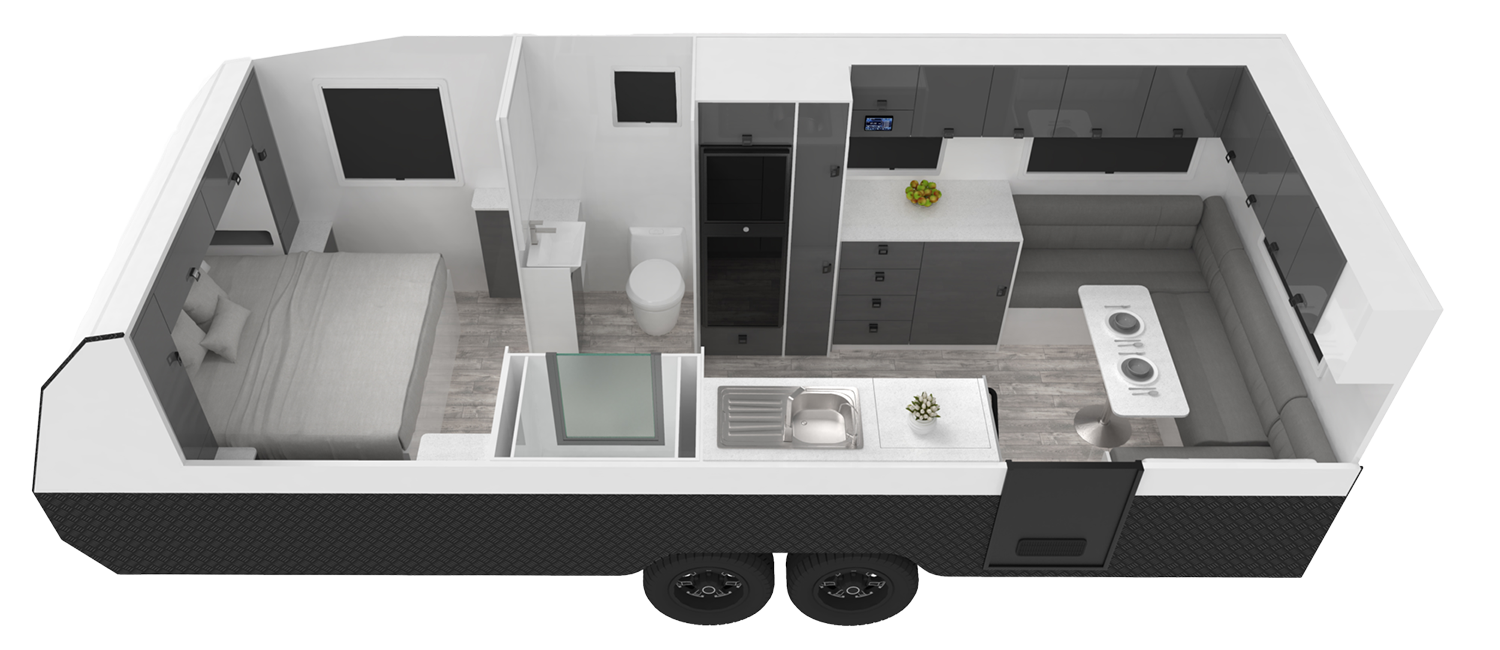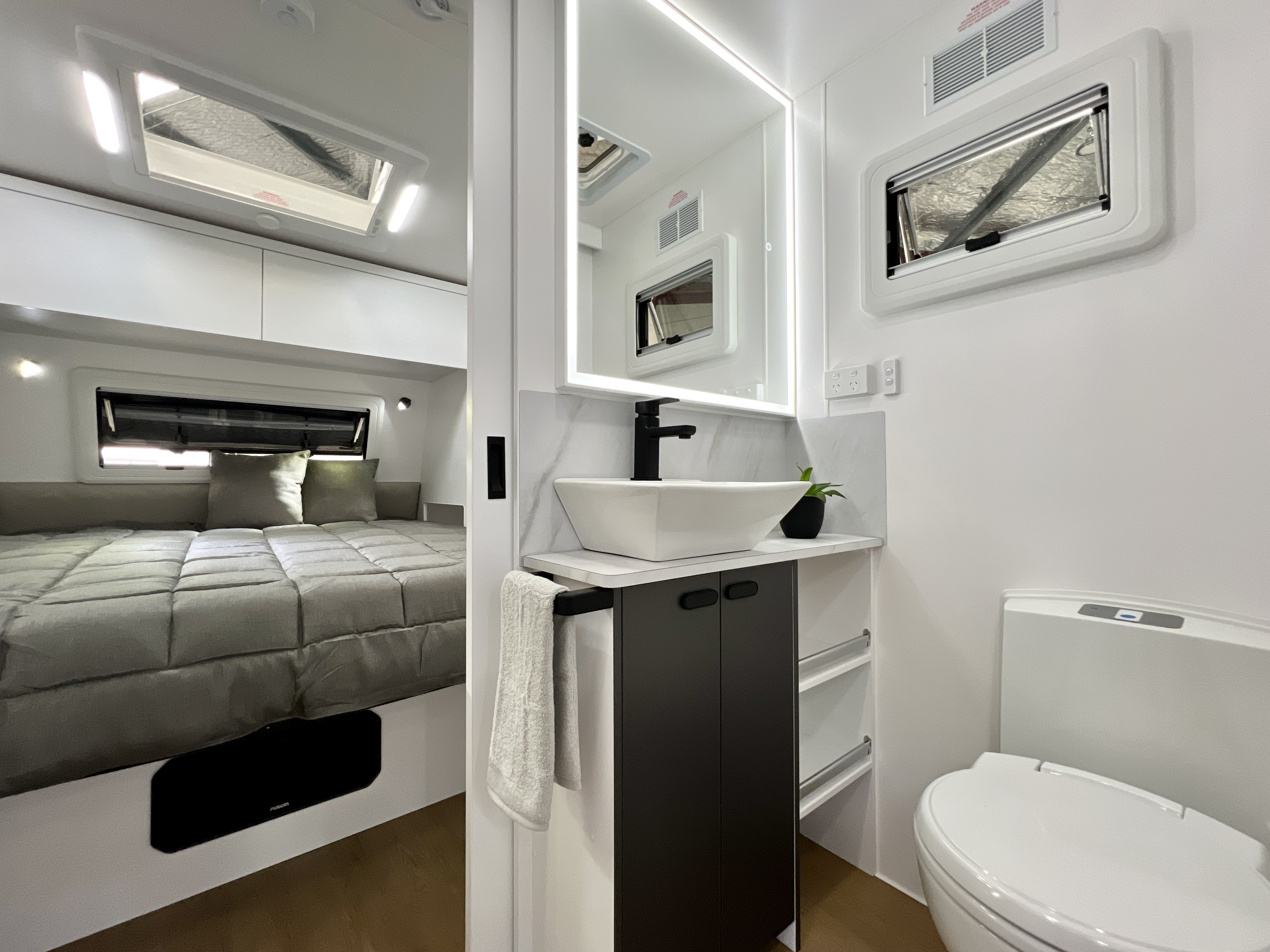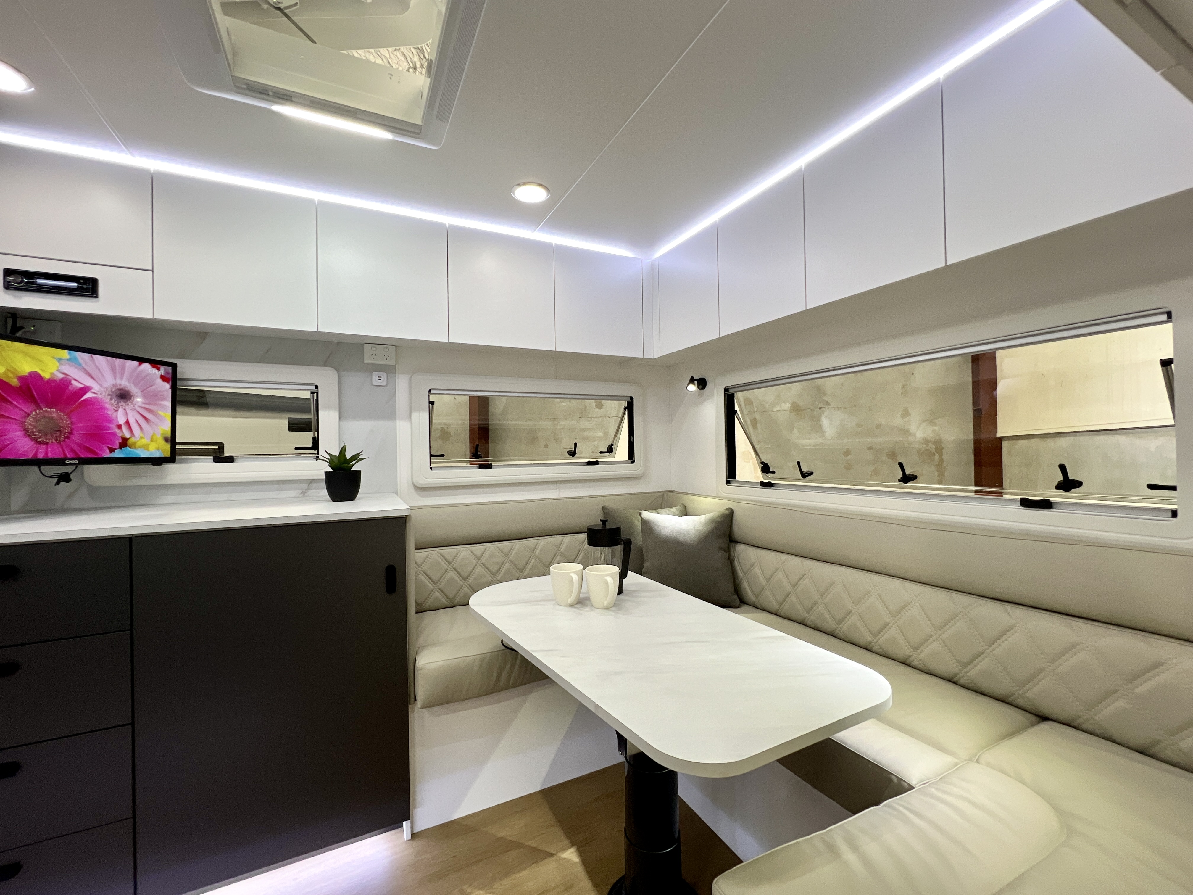 This layout is a sure winner for caravanning in utmost style and comfort. With the plush rear club lounge, full central ensuite bathroom and front bedroom, this is a 5-star hotel on wheels.