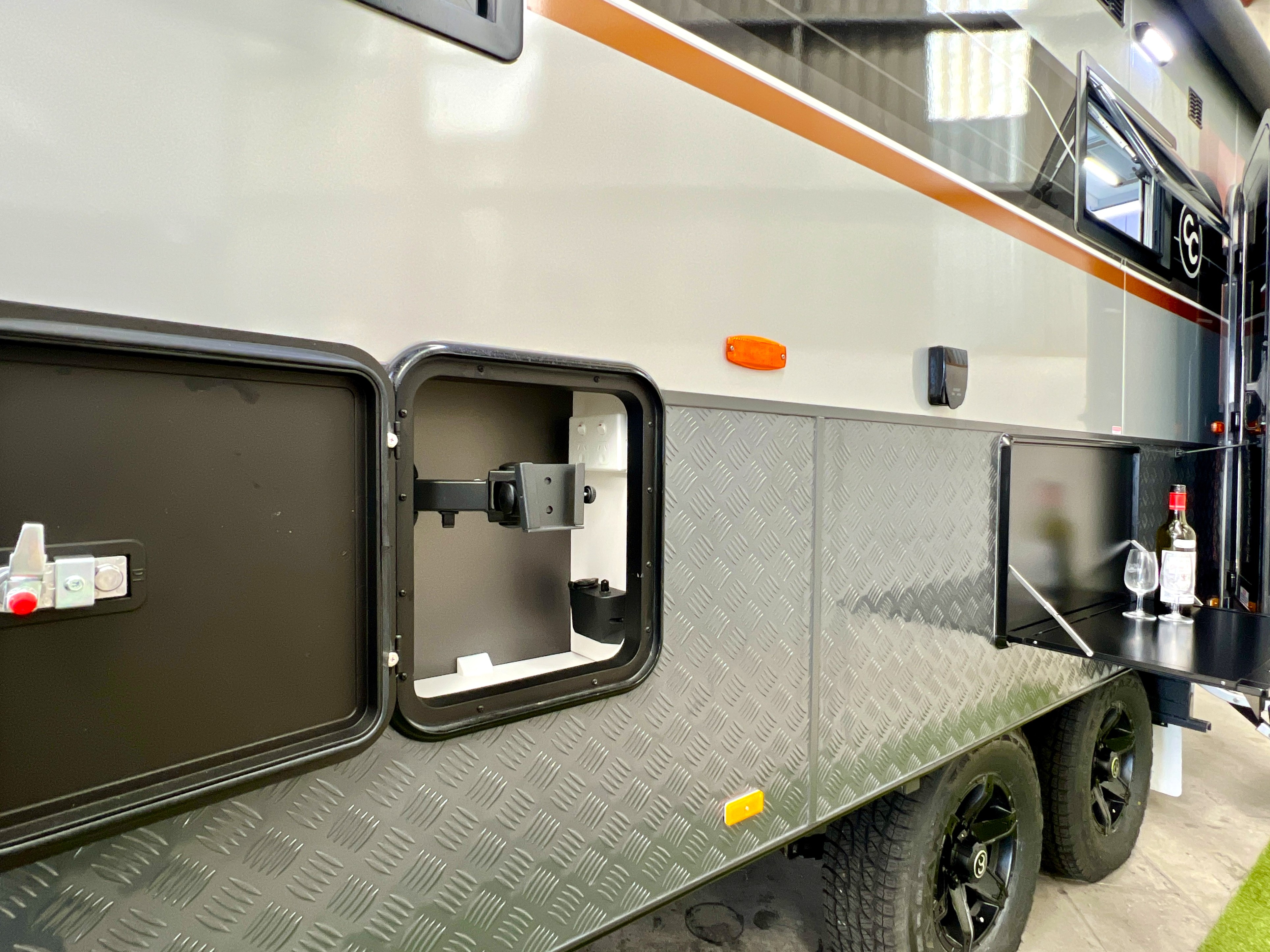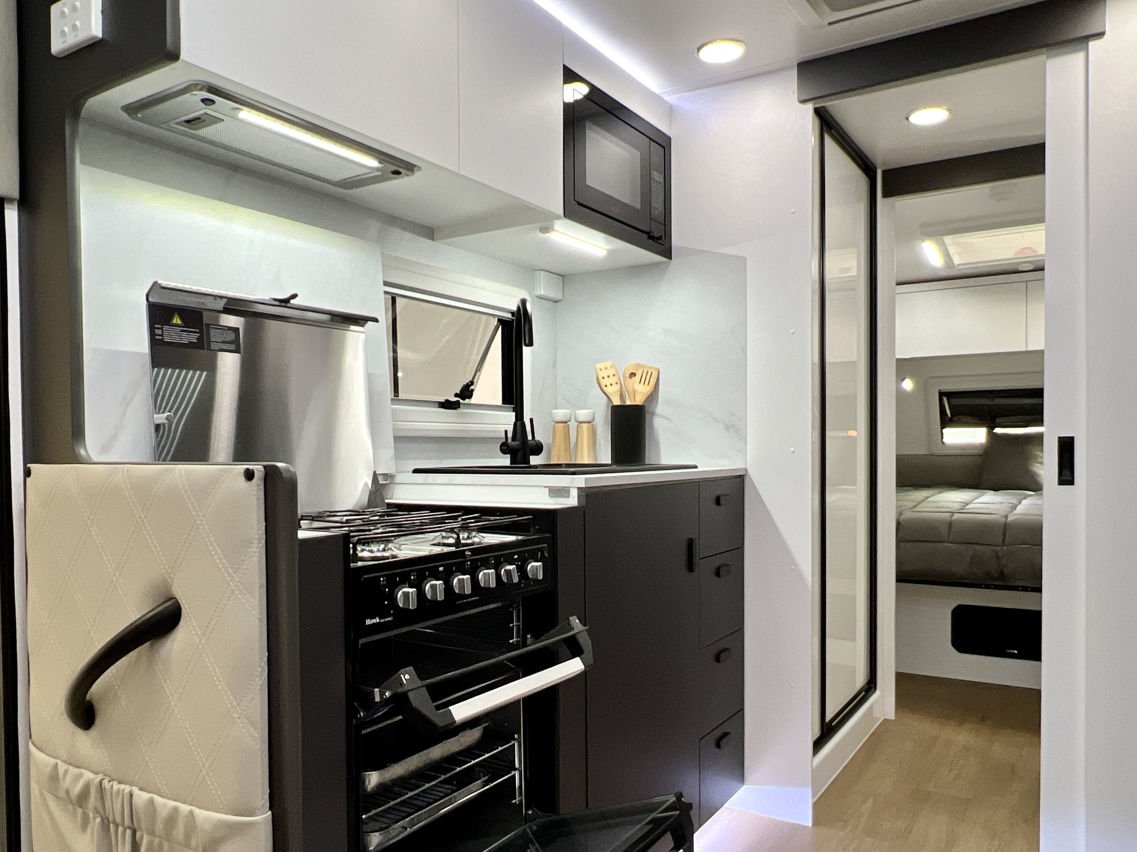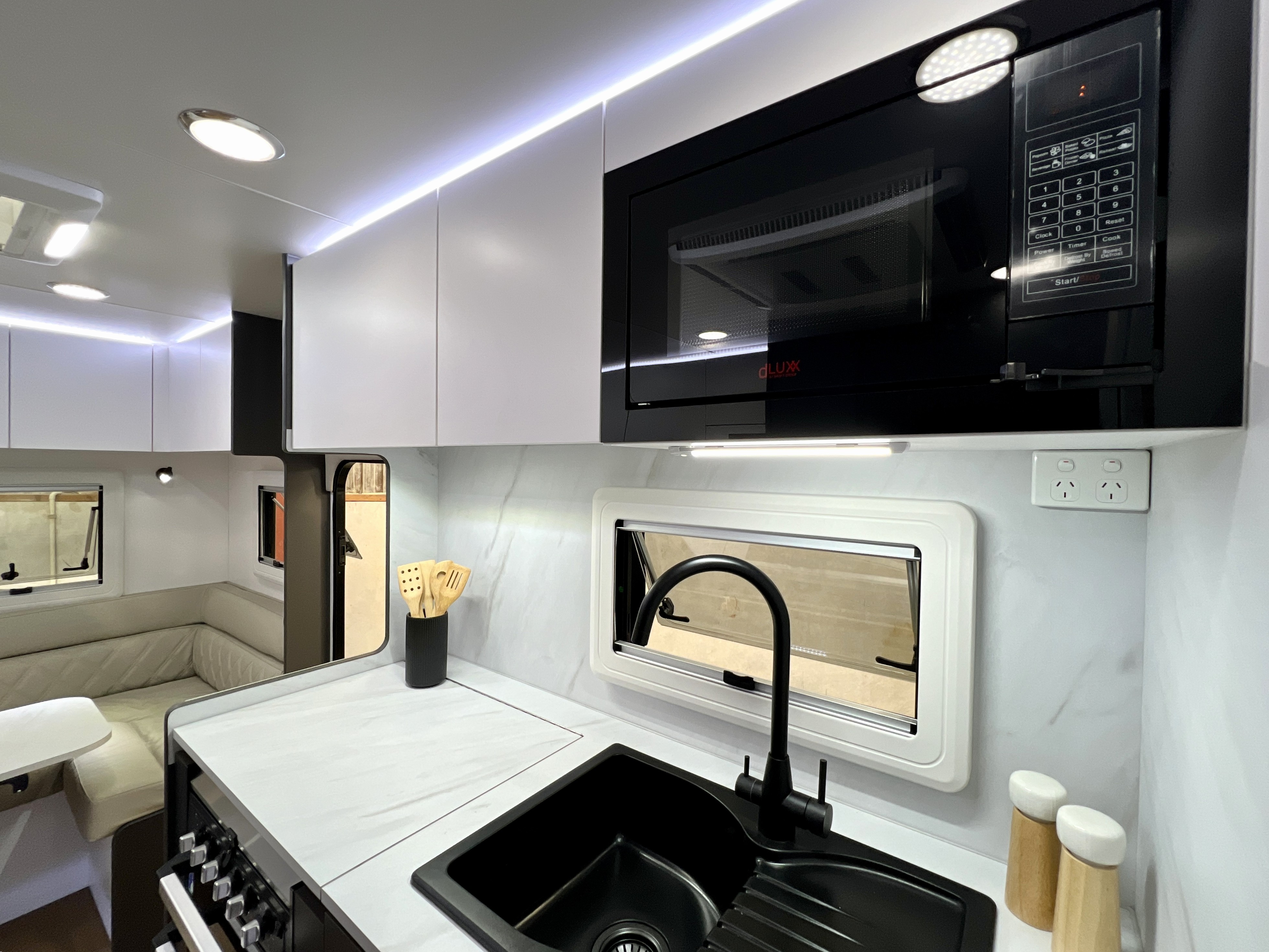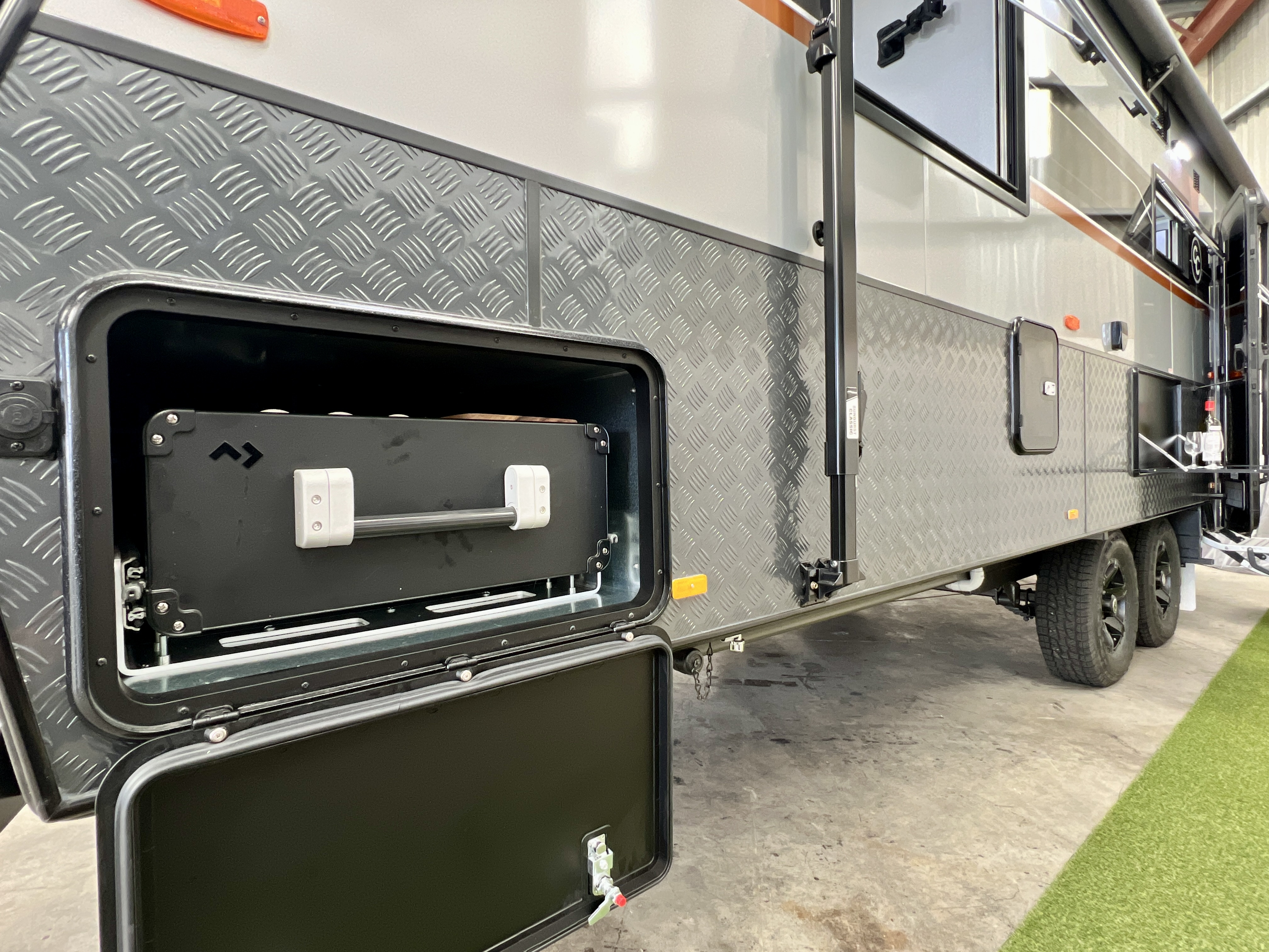 This layout is a sure winner for caravanning in utmost style and comfort. With the plush rear club lounge, full central ensuite bathroom and front bedroom, this is a 5-star hotel on wheels.