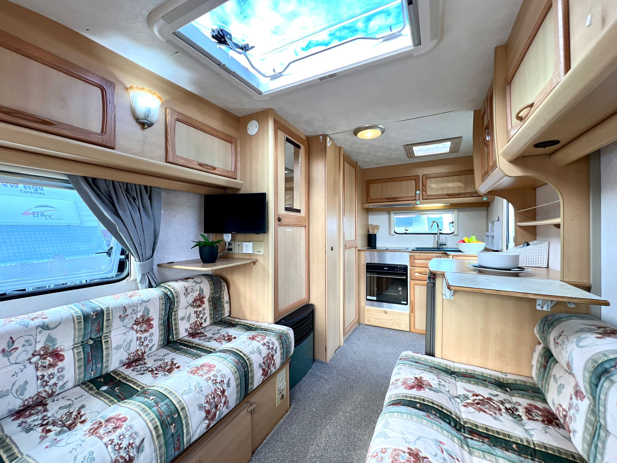 • Full end kitchen with oven, grill, gas hobs, fridge, sink and mixer