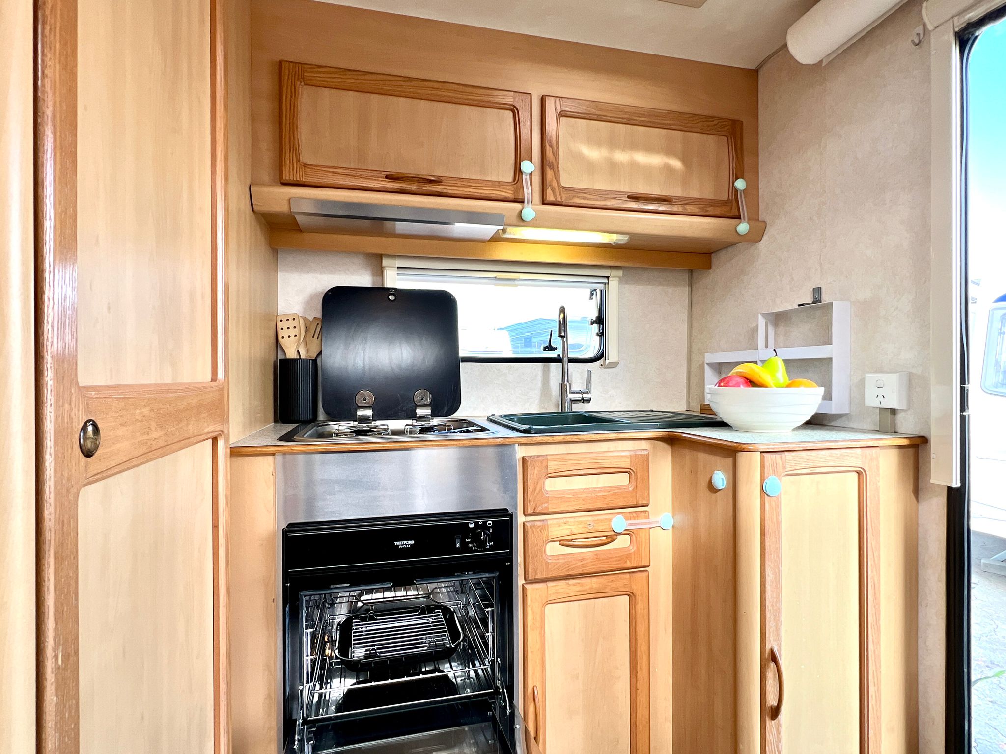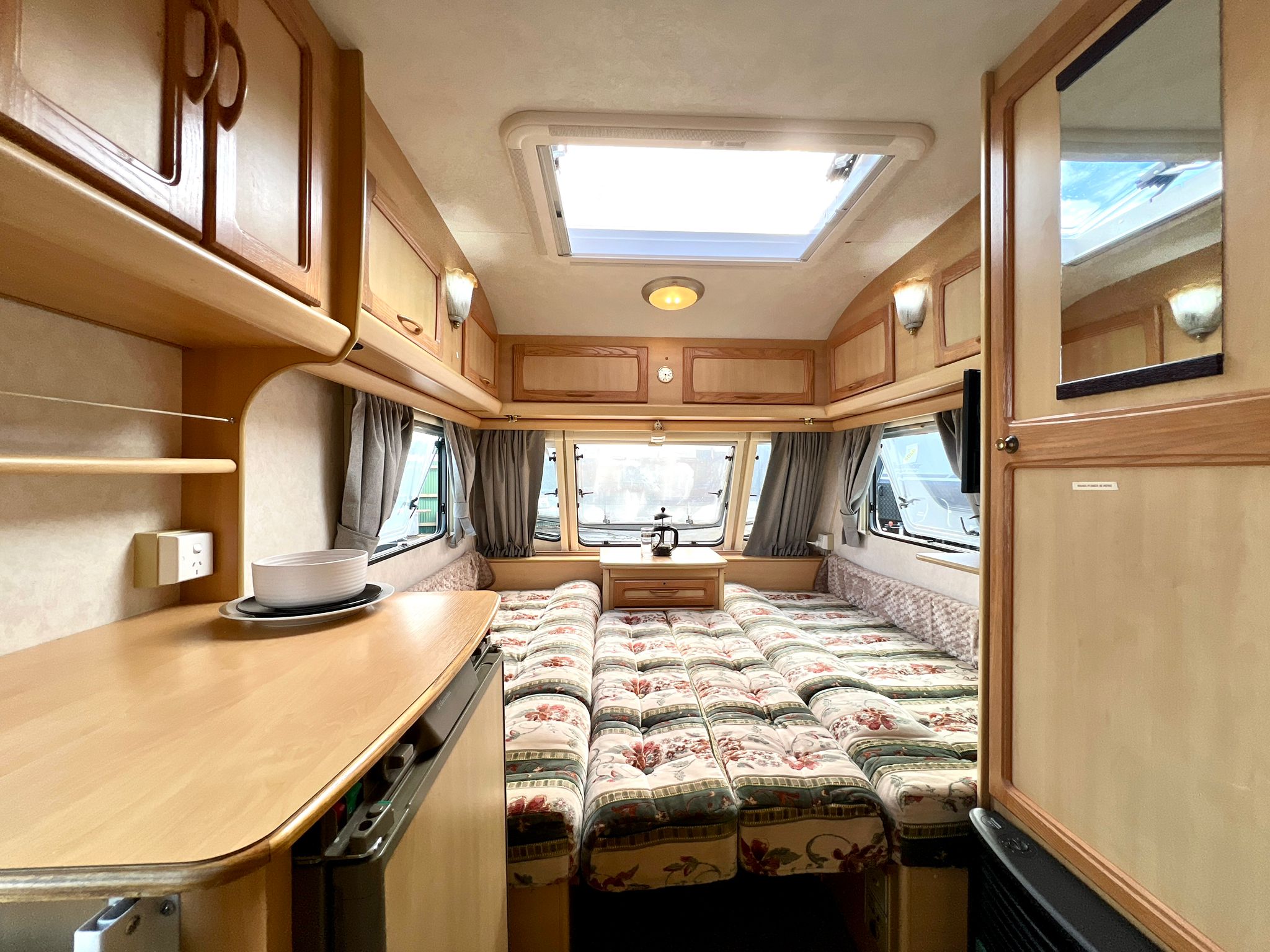 • Front lounge / dining that makes up large double bed with pull out-slats (or twin single bed option)