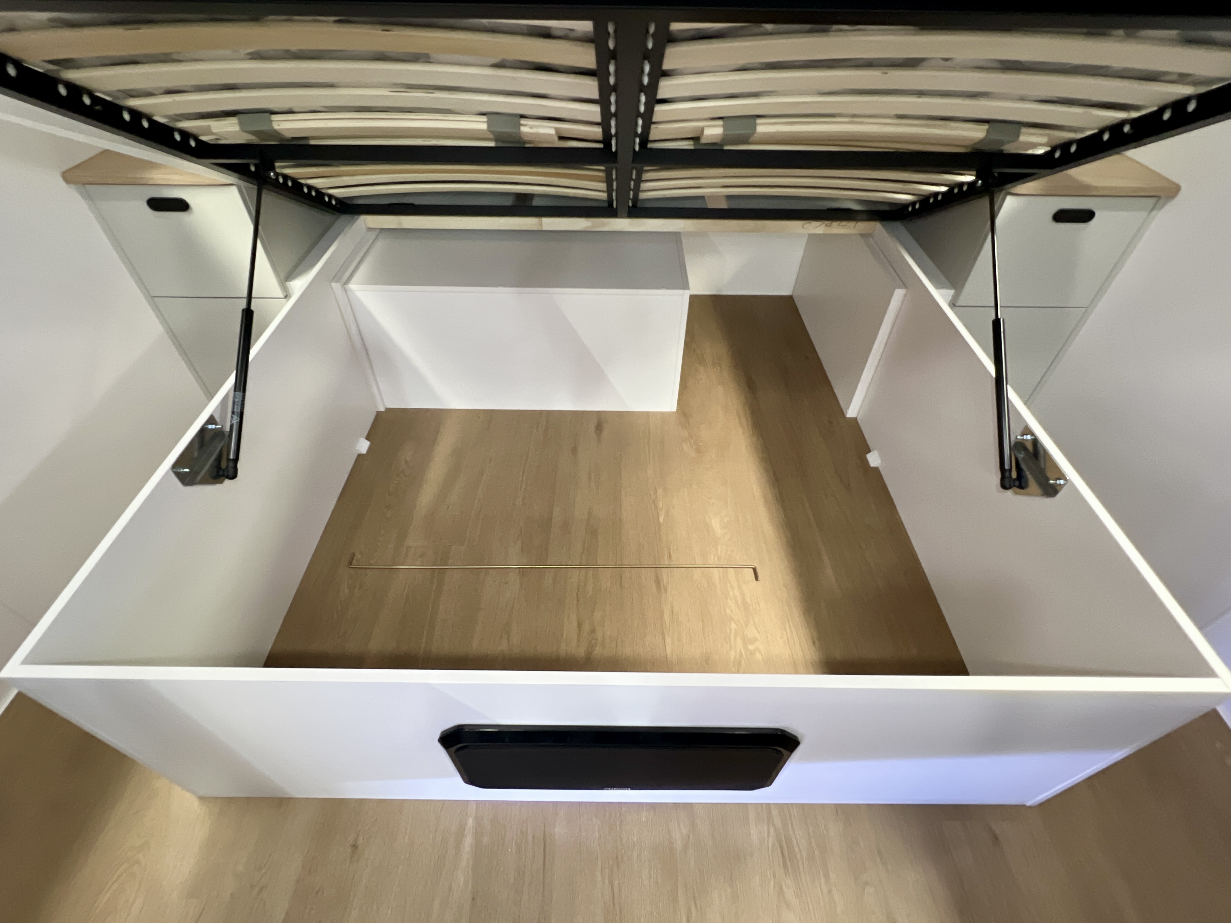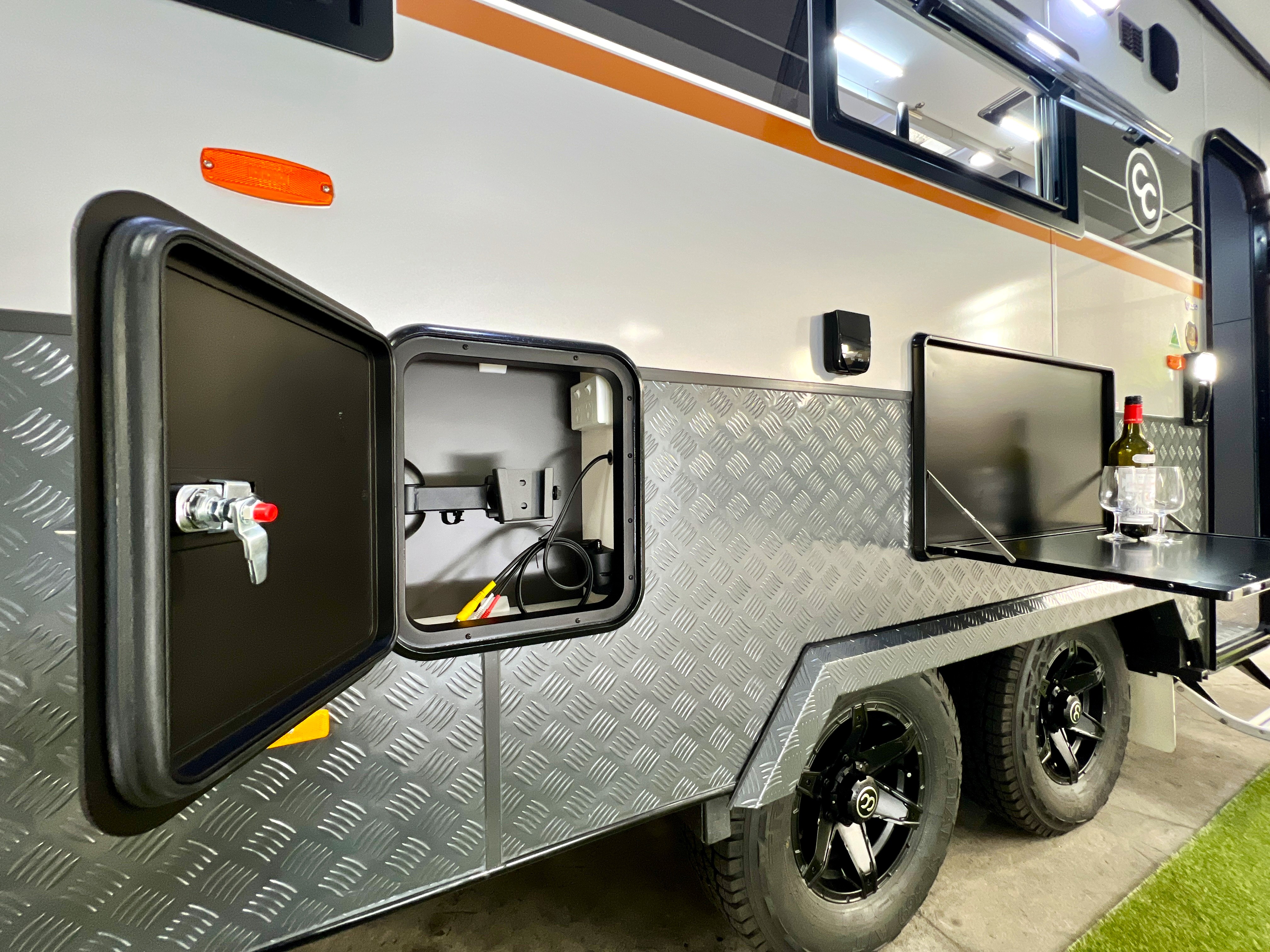 - Personal storage compartment to bedside with 12v USB A/C combo sockets and power points