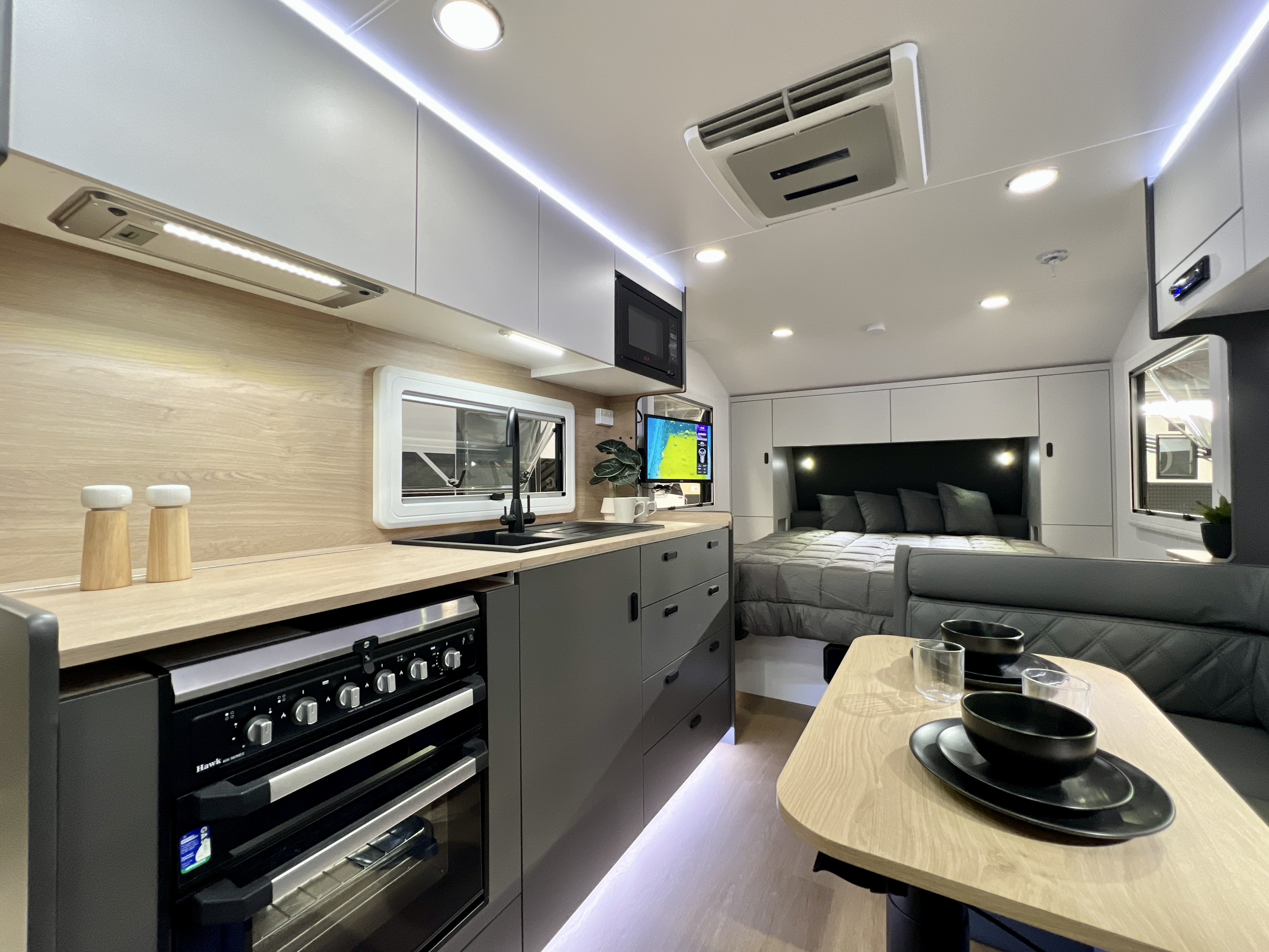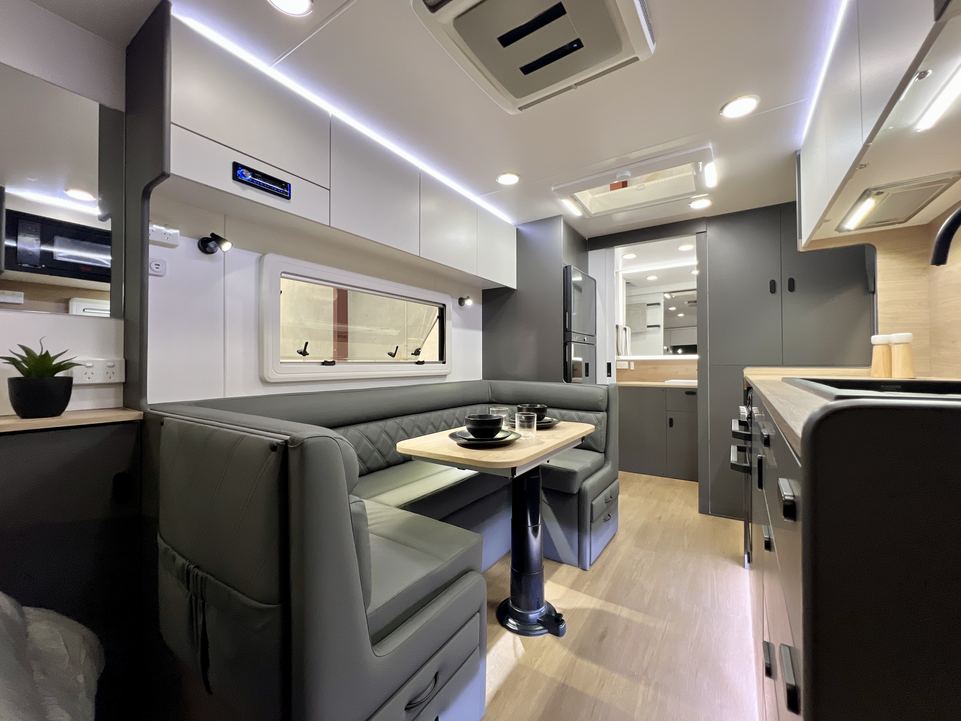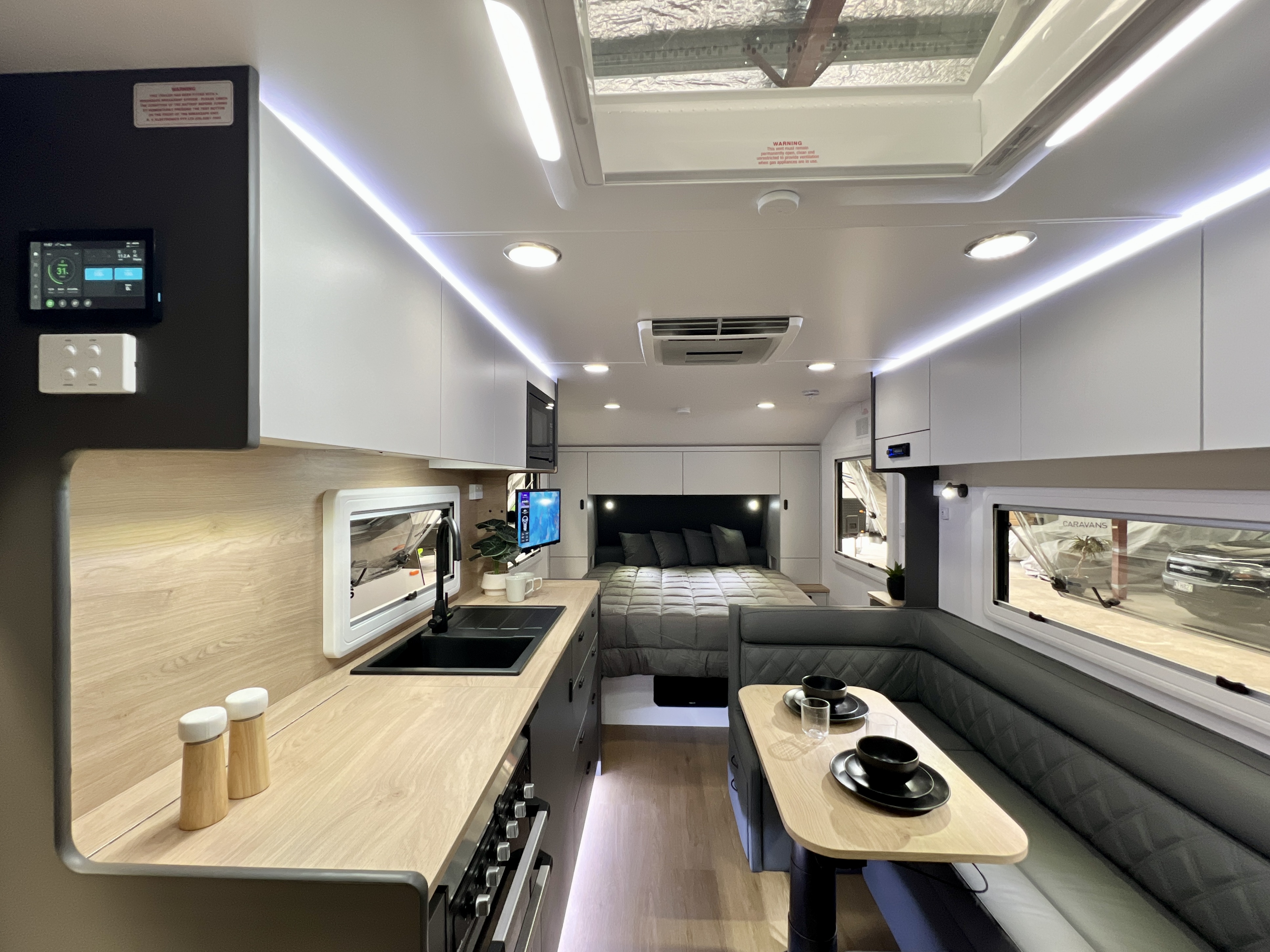 - Internal 12v USB A/C combo fitted to dinette and bedside storage compartment