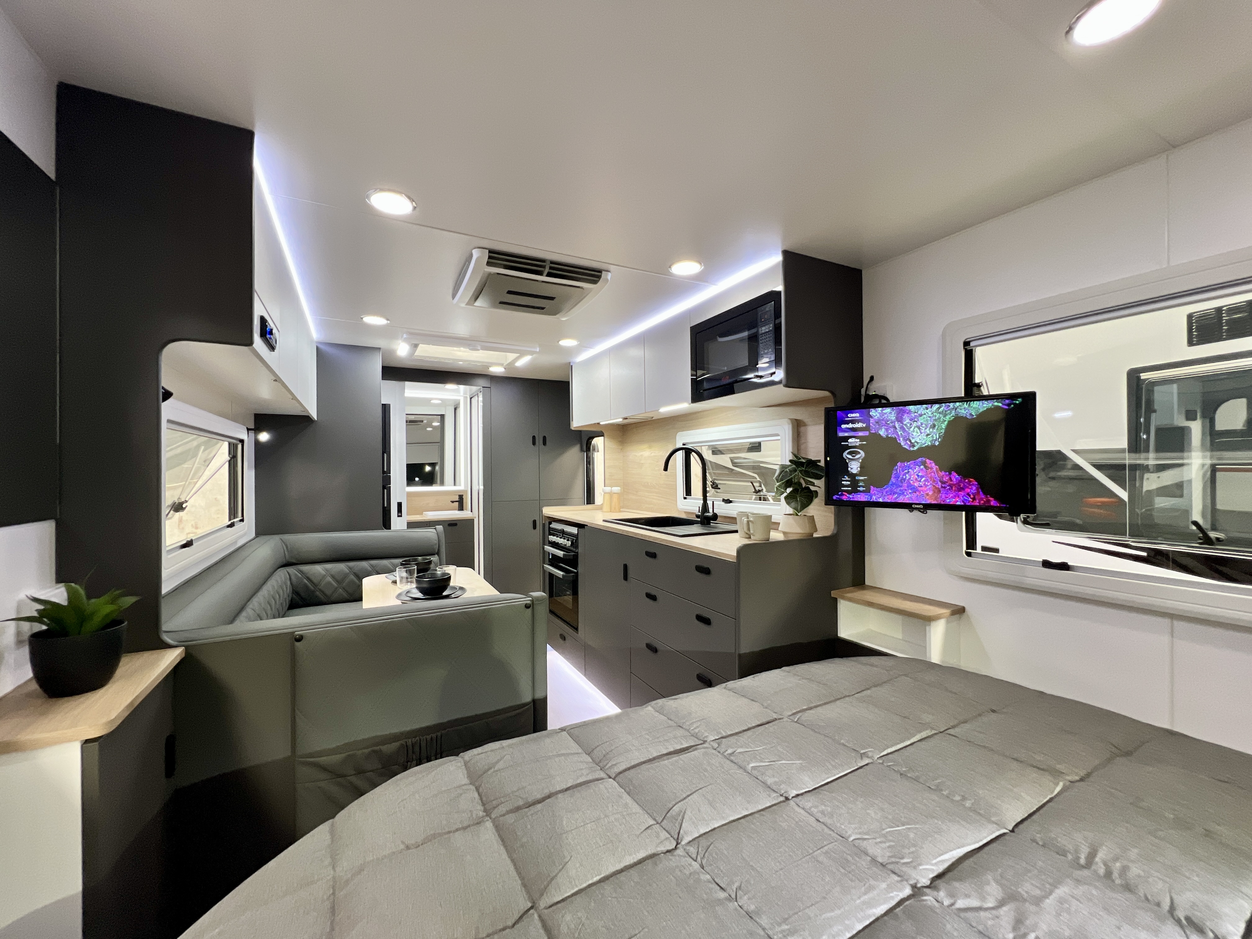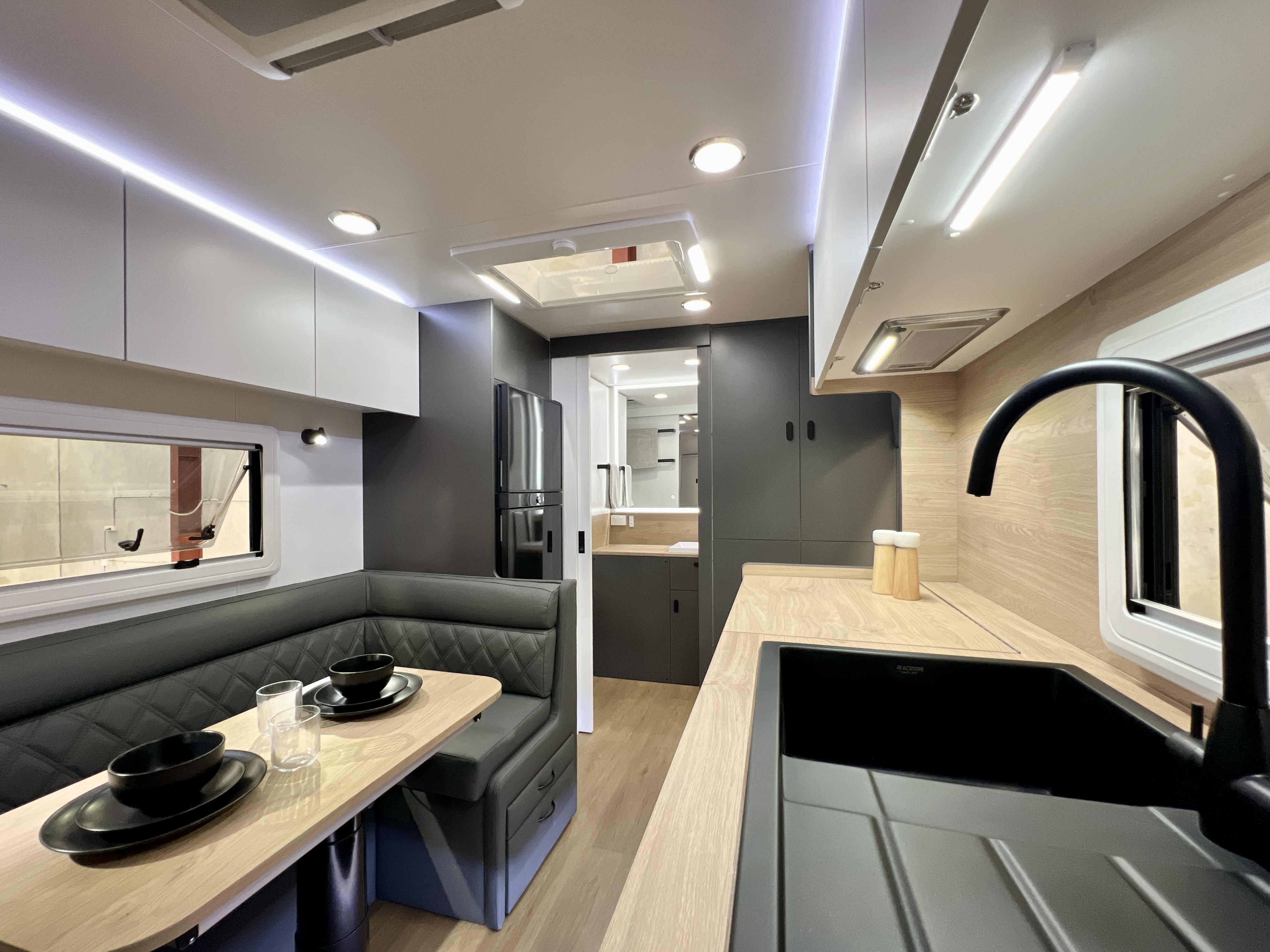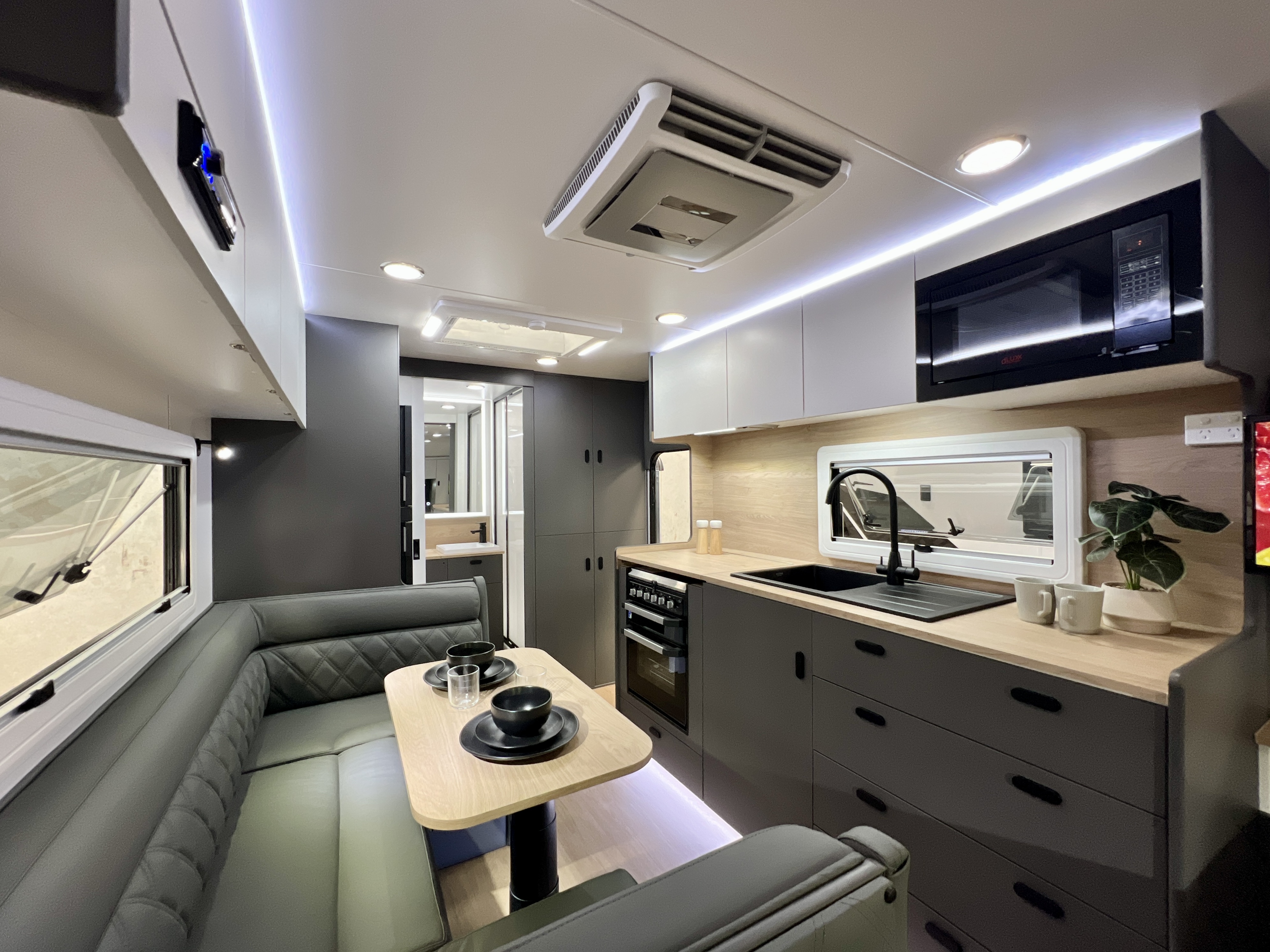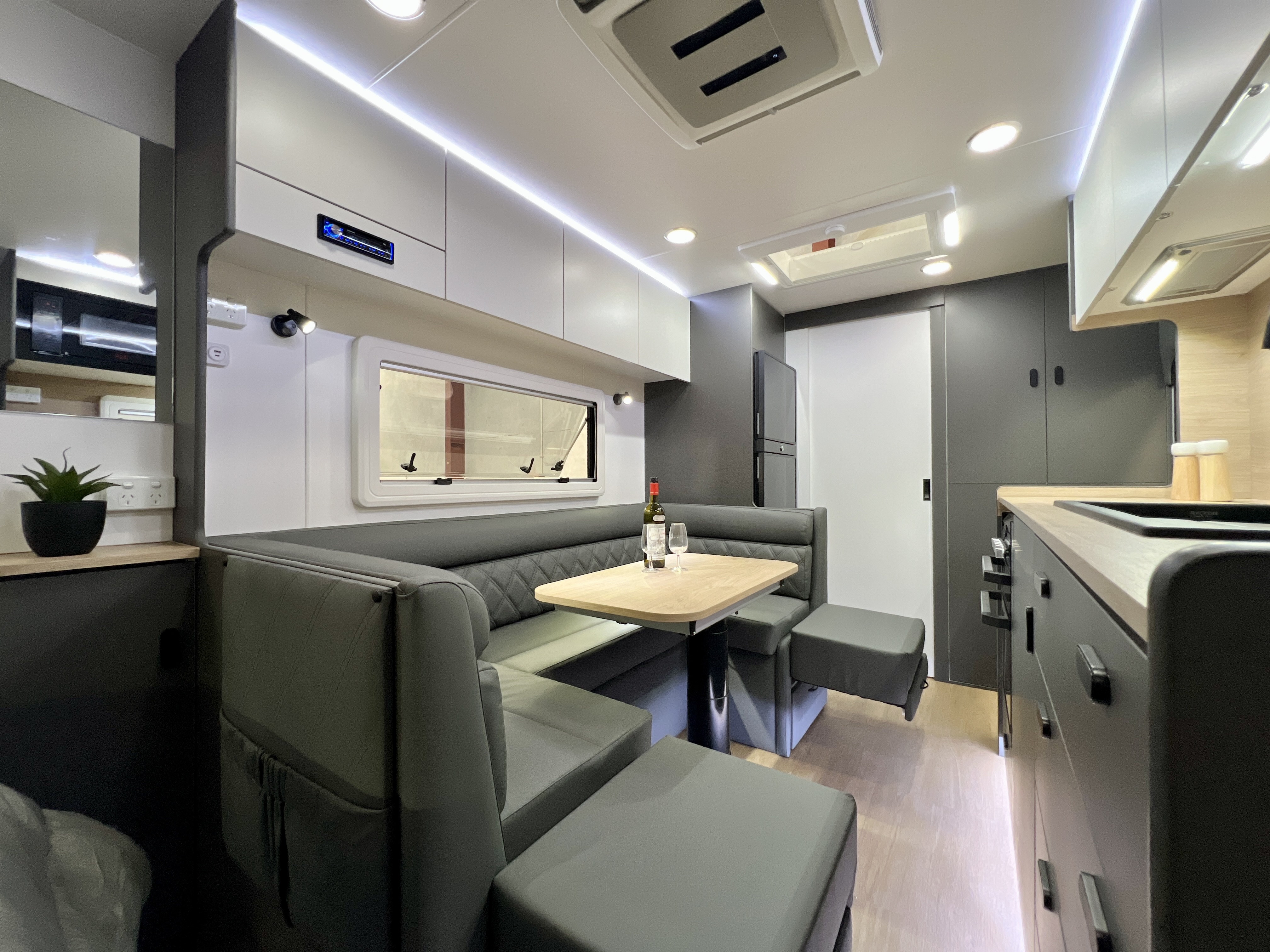 - Internal 12v USB A/C combo fitted to dinette and bedside storage compartment