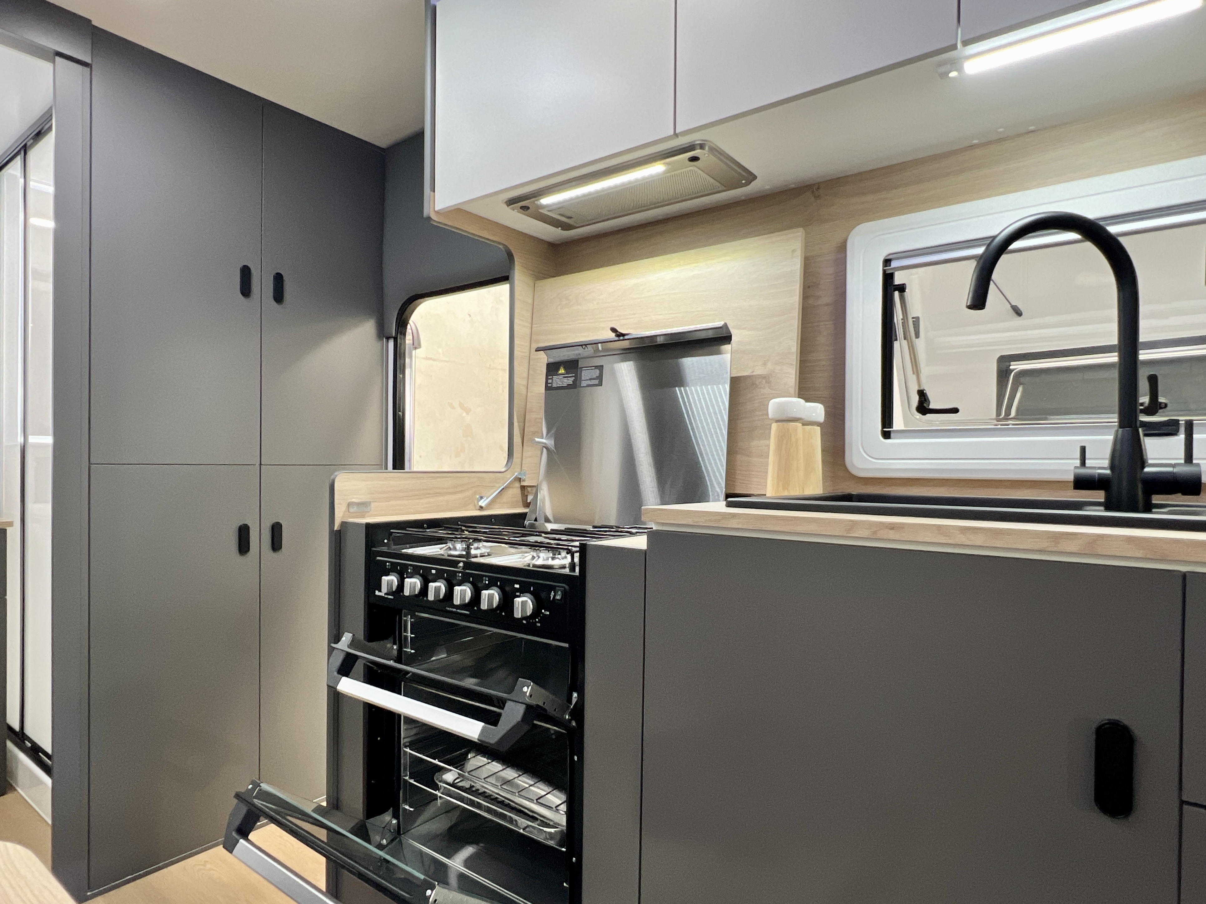 - Large German roof hatch with wind-up control and LED lighting