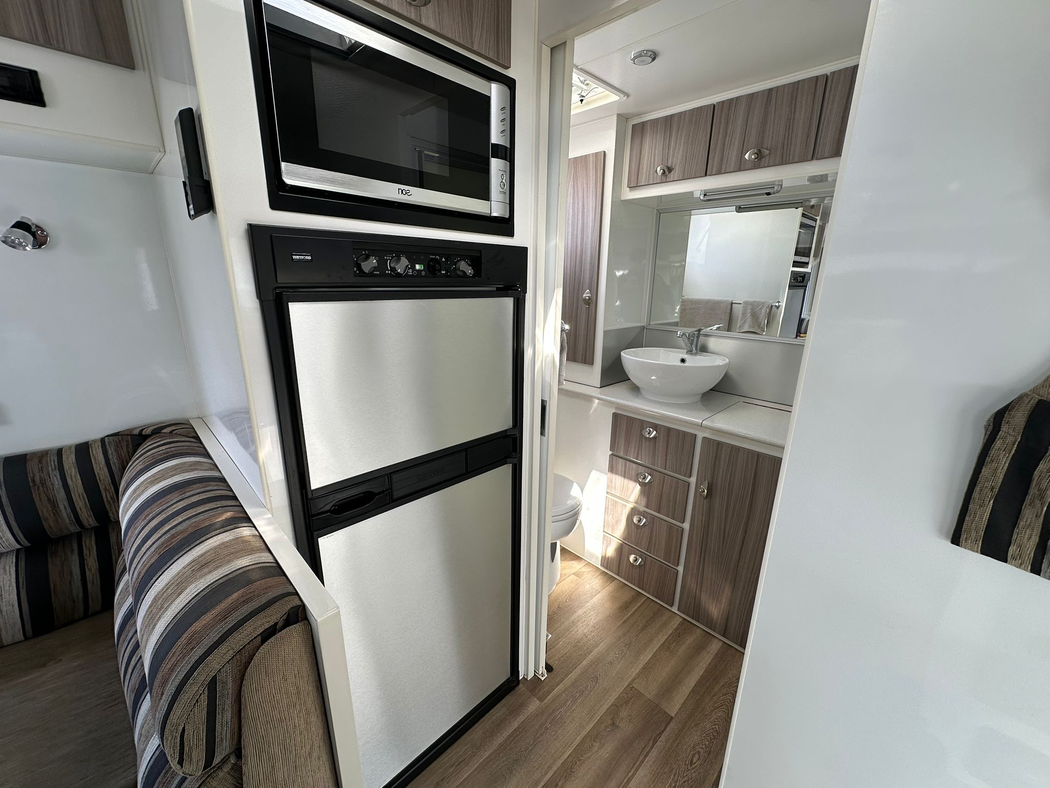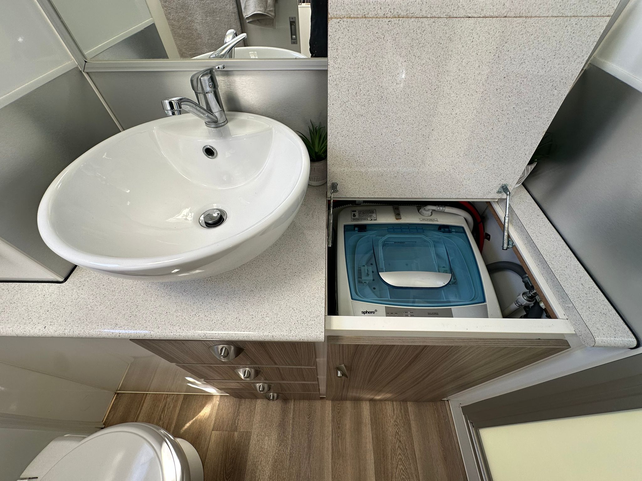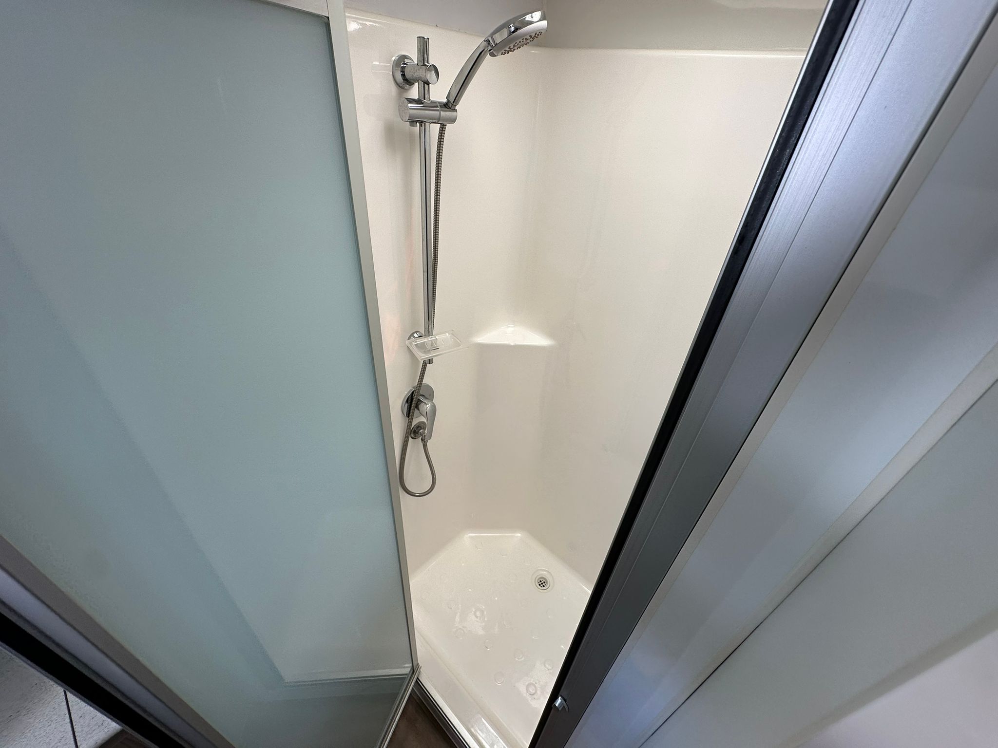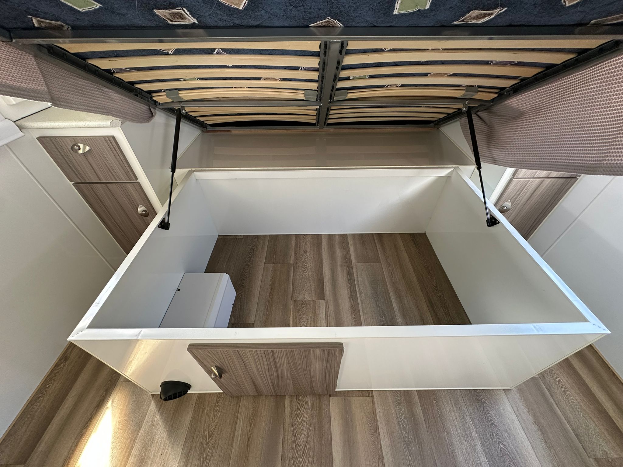This Explorer model has the very popular spacious couple’s layout with Queen island bed in the front, central kitchen + dinette and full rear ensuite. A fantastic van in this price range.