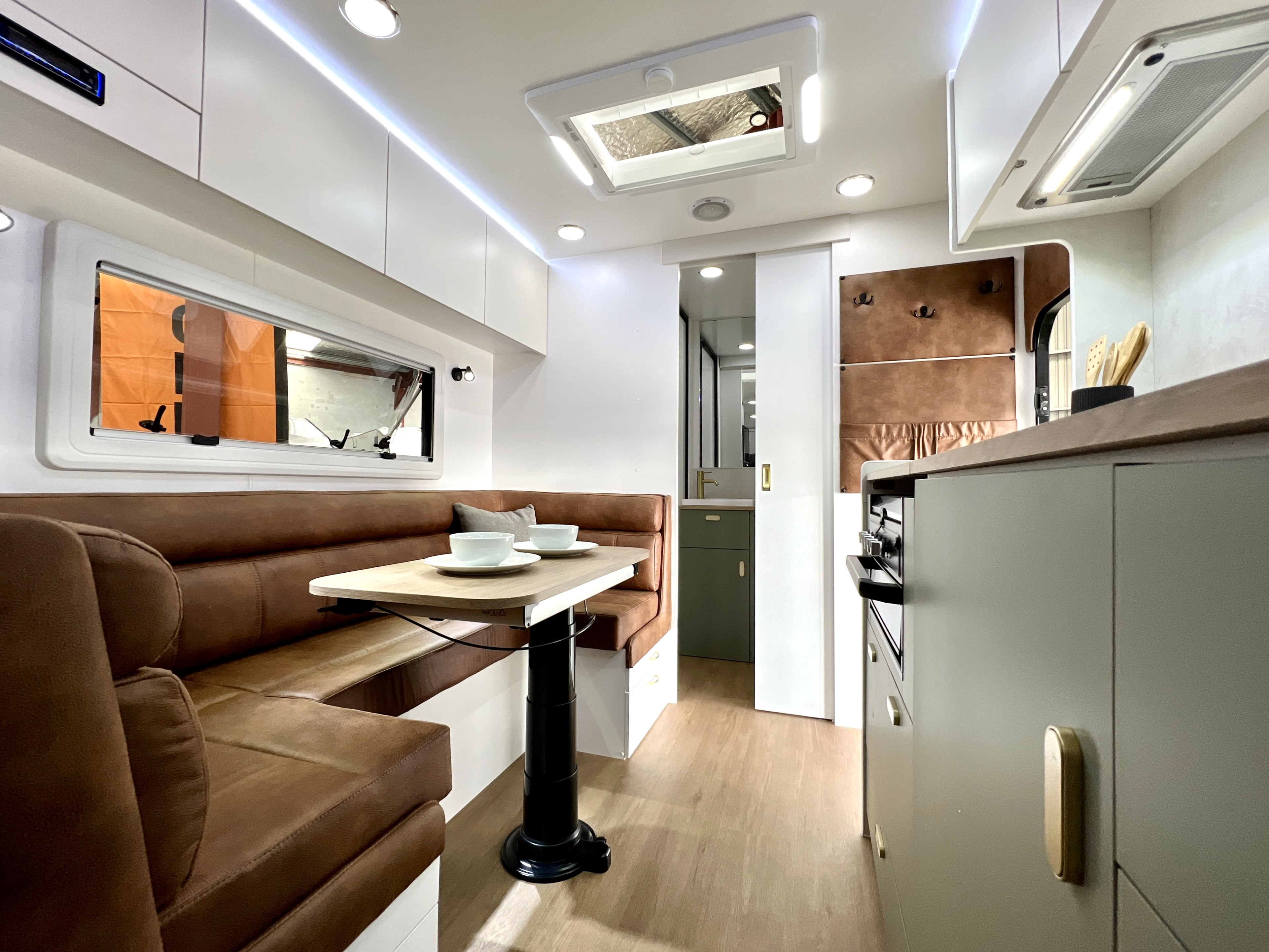 - Additional berth. Hydraulic dining table leg with infill cushion